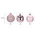 Šie žaislai yra pagaminti iš patvarios plastmasės, todėl jie yra nelaužomi. Komplektą sudaro 12 bumbių, kurios yra rožinės spalvos ir turi perlamutro, blizgančių ir švytinčių efektų. Kiekvienas žaislas turi virvelę pakabinimui, todėl papuošti eglutę bus itin lengva. Jie taip pat yra gražiai supakuoti, todėl idealiai tinka dovanai.