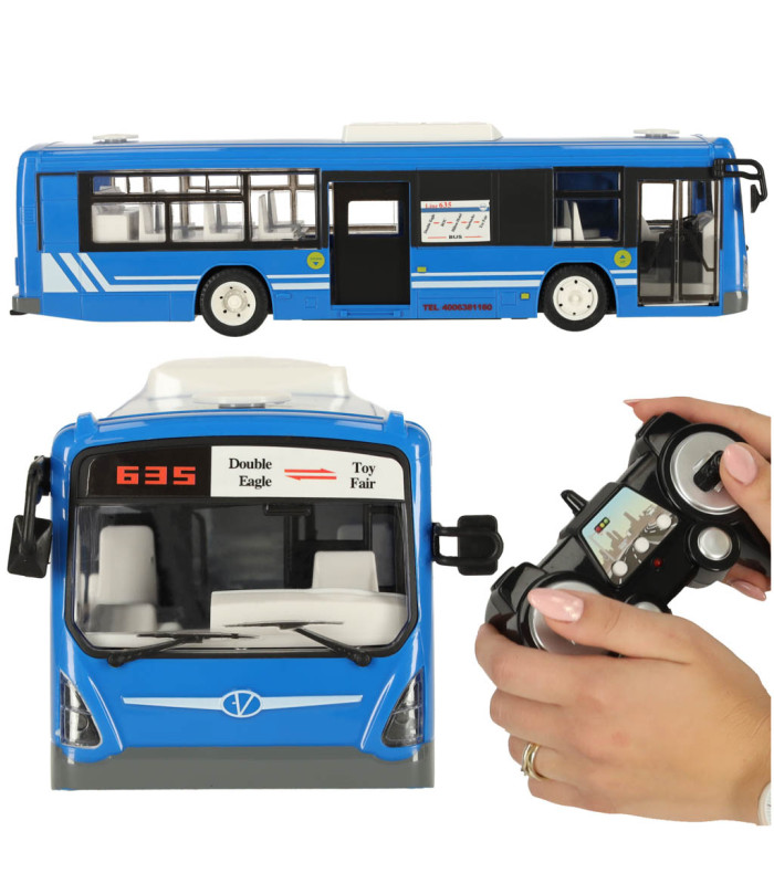 Nuotoliniu būdu valdomas RC autobusas su durimis mėlynos spalvos