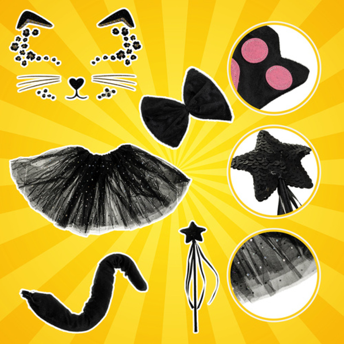 KRUZZEL juodos katės kostiumas mergaitėms, 7 viename rinkinys!