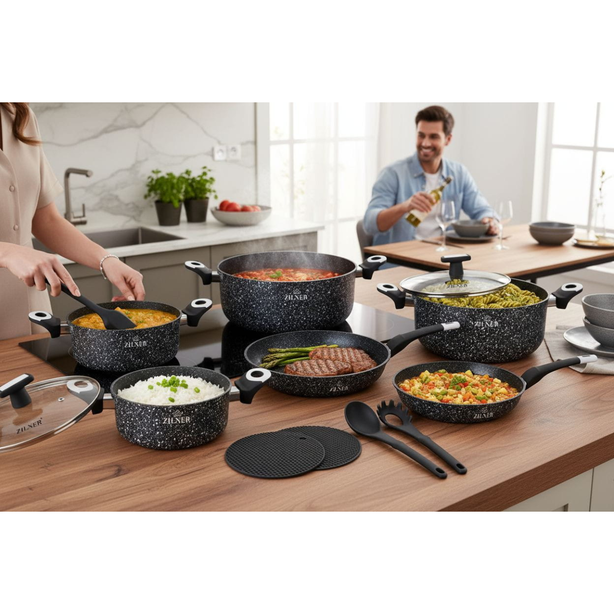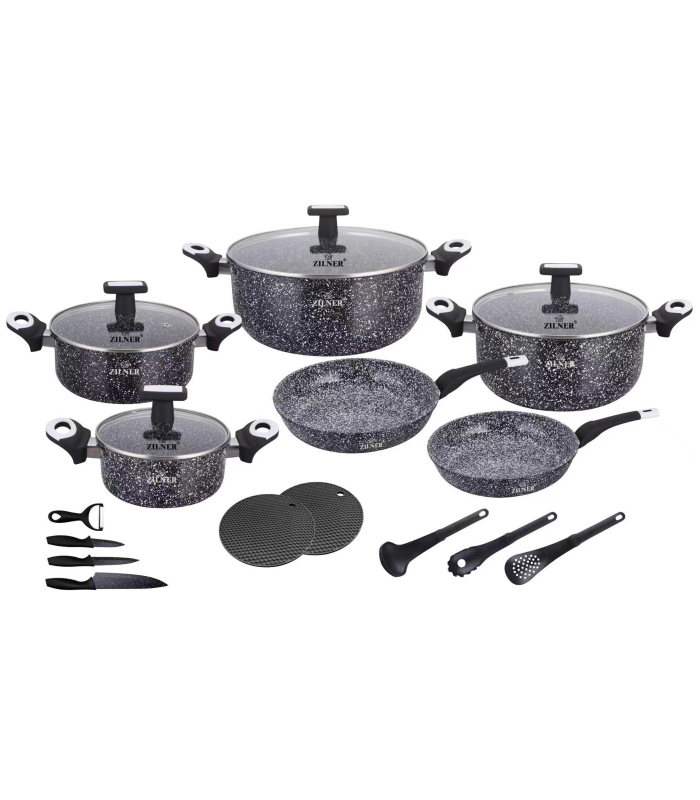 Akmens masės puodų ir keptuvių rinkinys su virtuvės įrankiais 19 dalių, ZILNER ZL-8821