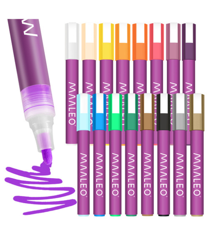 MAALEO akriliniai žymekliai yra rašikliai su tikrais akriliniais dažais, o ne žymekliai su vandens pagrindo pigmentiniu rašalu . Tai reiškia, kad jie pasižymi kitokiomis savybėmis nei klasikiniai ploni flomasteriai ar flomasteriai. Jie skirti dažymui, dekoravimui ir raštų tvirtinimui, o ne įprastam rašymui ant plono popieriaus . Dėl akrilinės formulės, užtikrina intensyvų padengimą ir ilgaamžiškumą ant daugelio skirtingų paviršių be prasiskverbimas.