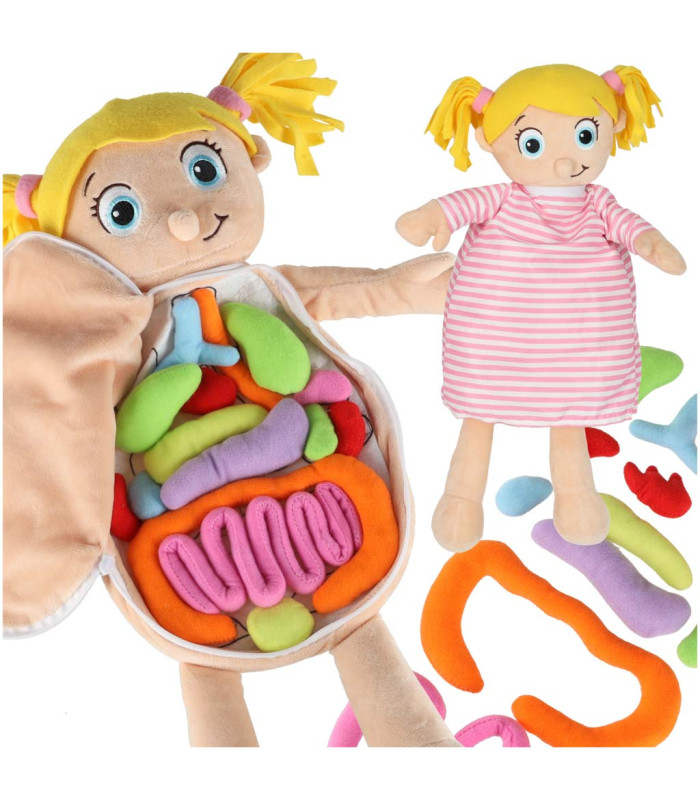 Anatominė lėlė puikiai tinka tiek namuose, tiek darželyje - kaip didaktinė, terapinė ar edukacinė priemonė. Ji leidžia vaikams, besidomintiems anatomija, paprastai ir saugiai tyrinėti mokslo pasaulį, mokantis per veiksmą. Padeda suprasti žmogaus organų sistemą, ugdo vaizduotę ir palaiko loginį mąstymą. Tai žaislas, kuris jungia mokslą, emocijas ir ugdymą - viskas viename! Lėlė turi užrašus anglų kalba.