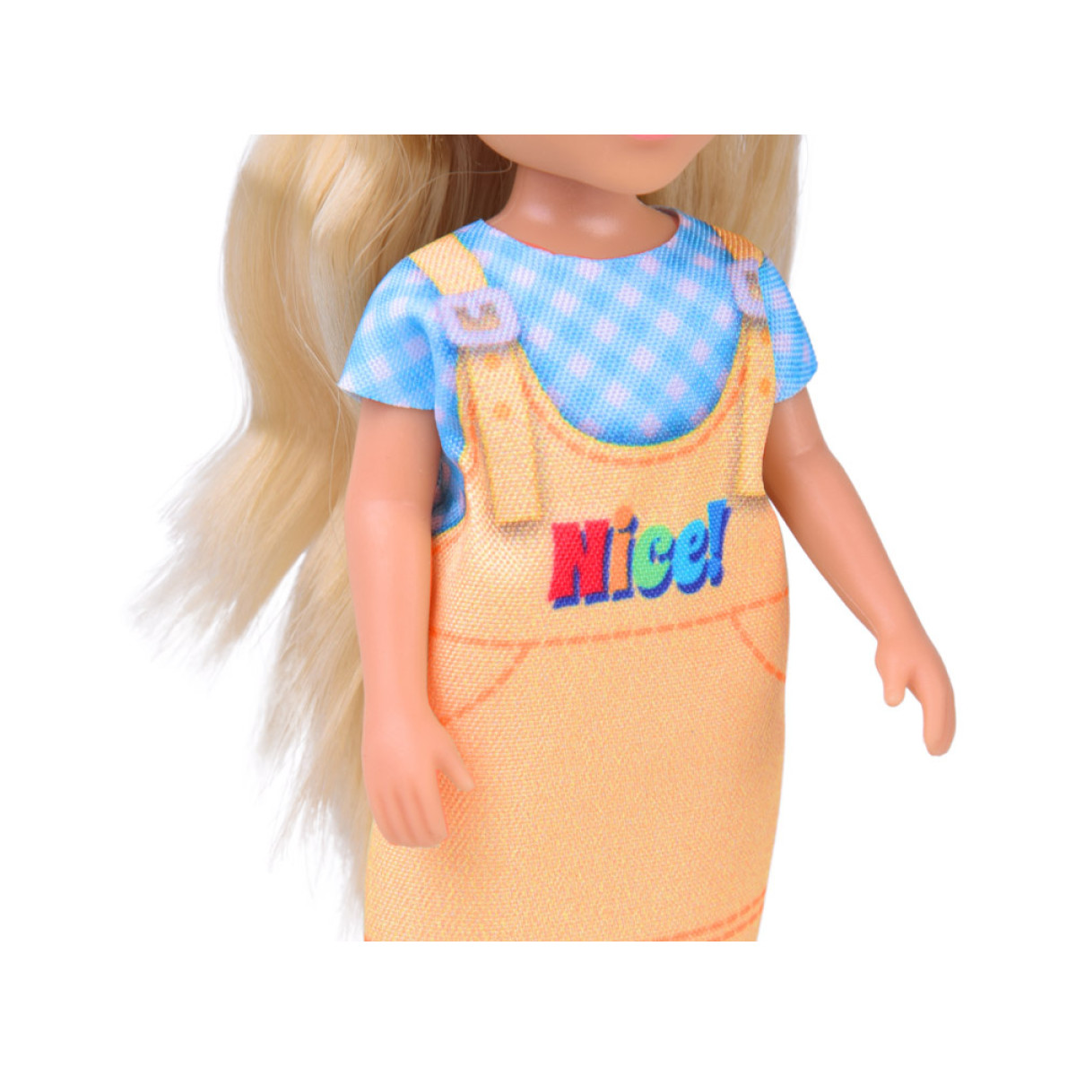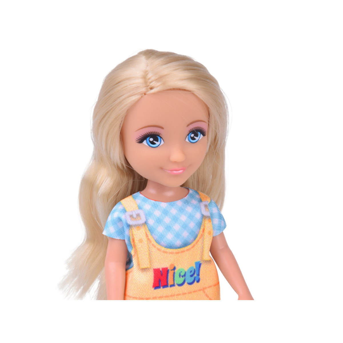 Lėlytė yra apie 14 cm ūgio, turi ilgas, blondines plaukus, kuriuos galima šukuoti ir stilingai formuoti. Ji vilki geltoną suknelę su spalvingu užrašu „Nice!“, o ant kojų - rožinius batelius su kaspinėliu.