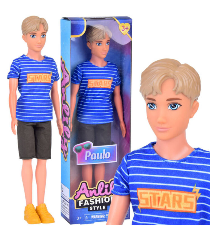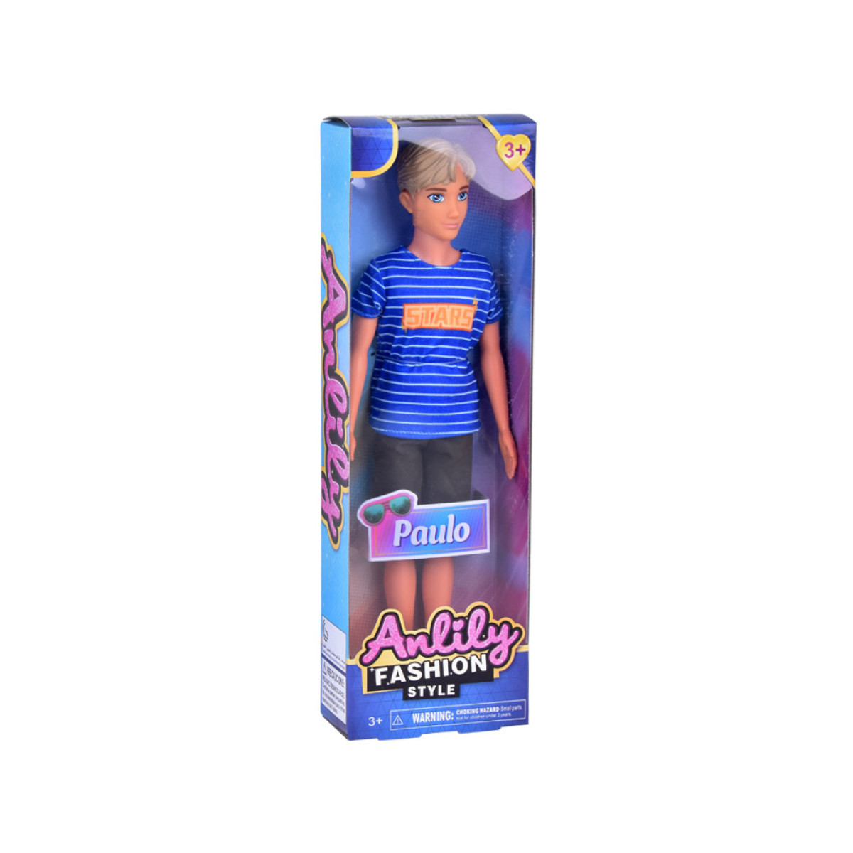 Anlily lėlė - stilingas vaikinas Paulo su šortais ir dryžuota marškinėliais