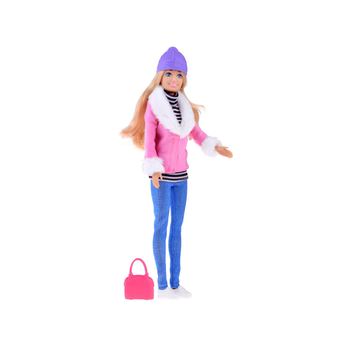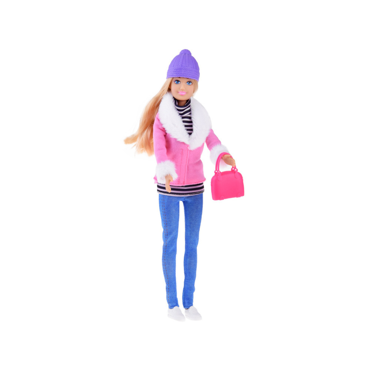 Elegantiška lėlė su ilgais šviesiais plaukais, apsirengusi žiemine apranga, patiks kiekvienai mergaitei. Lėlė turi puikius ilgus plaukus, iš kurių galima kurti madingas šukuosenas, ant galvos dėvi violetinę žieminę kepurę. Apsirengusi stilingą rožinę striukytę, apsiūtą balta kailine medžiaga, po striuke lėlė dėvi dryžuotą golfą. Ant ilgų kojų užsidėjusi mėlynus leginsus, ant kojų – baltus prekės ženklo sportbačius. Komplektą papildo rožinė rankinė. Lėlės galūnės yra judančios, veidas su šypsena ir mėlynomis akimis. Lėlės aukštis yra apie 30 cm.