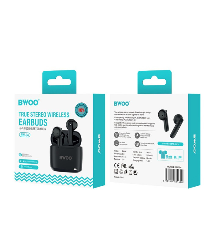 BWOO belaidės TWS ausinės BW94-BK juodos spalvos