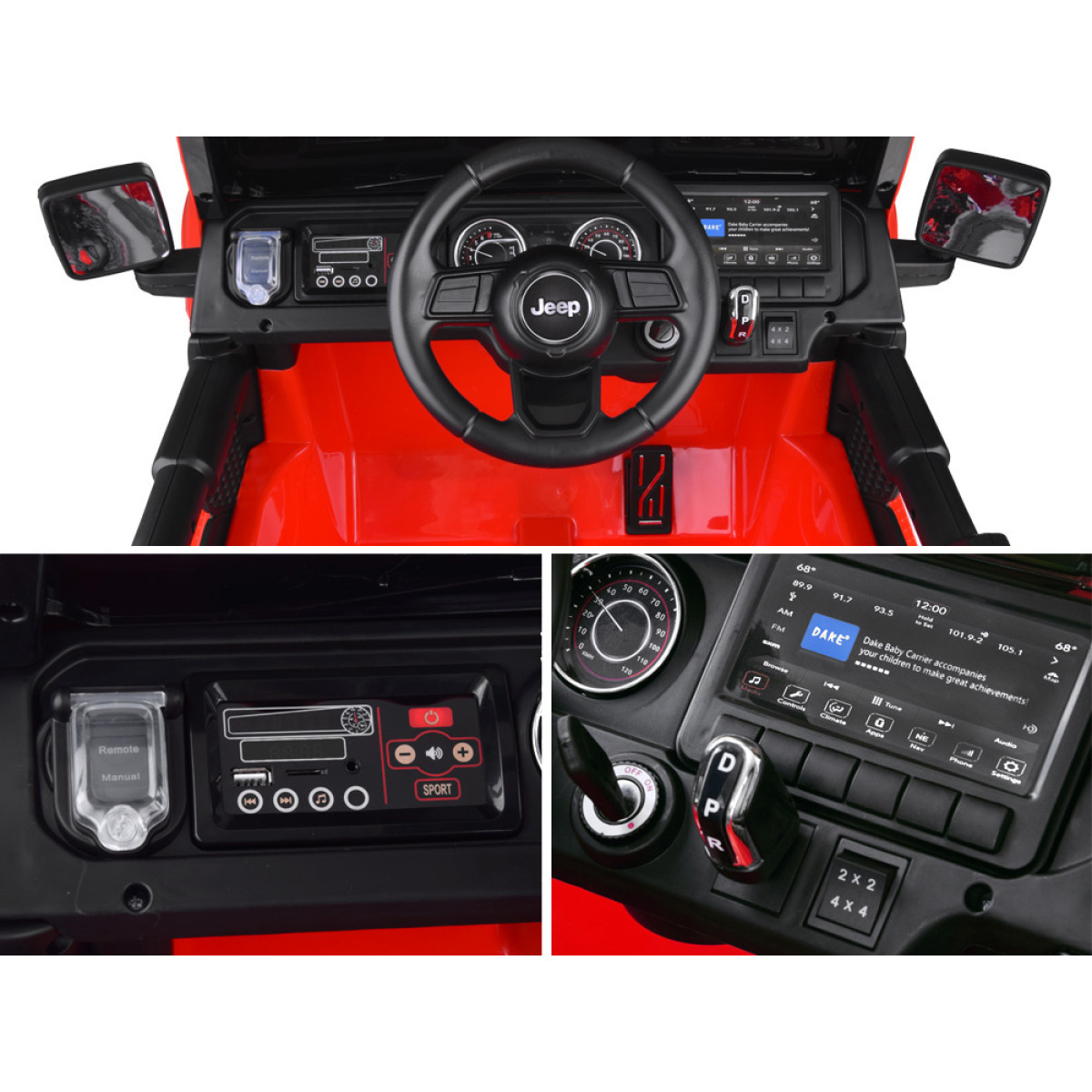 Automobilis valdomas 2,4 ghz nuotolinio valdymo pultu, tačiau vaikas gali važiuoti ir savarankiškai. Modelyje sumontuoti 4 galingi 45 w varikliai ir 12 v 10 ah akumuliatorius, todėl automobilis užtikrina gerą trauką ir stabilų važiavimą įvairiais paviršiais.