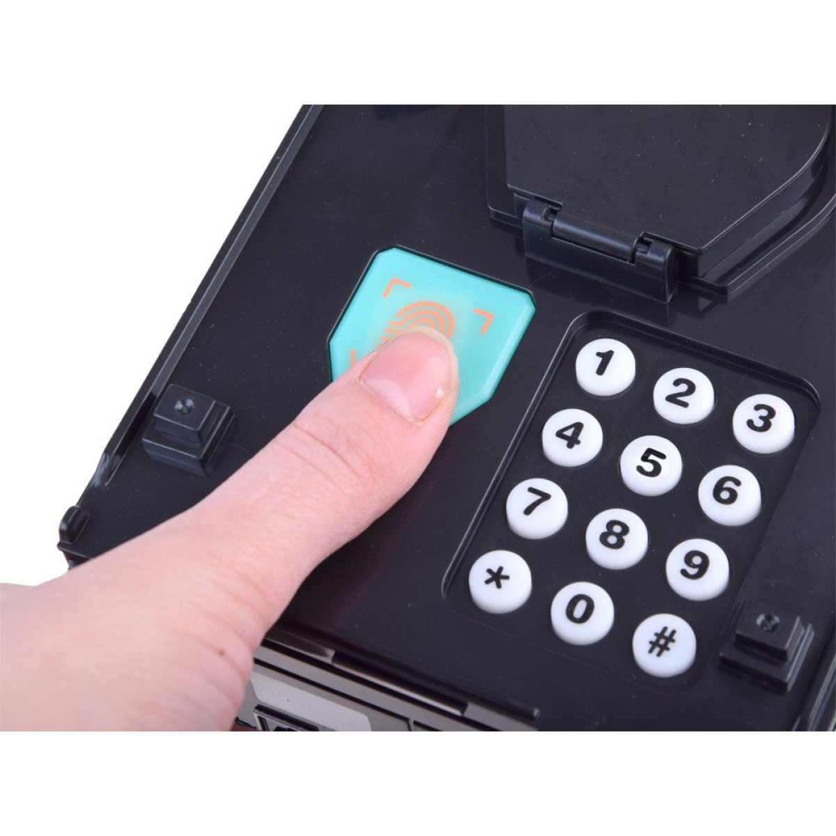 - Gamyklinis slaptažodis yra 0000. Įveskite keturis nulius ir patikrinkite pirštų atspaudo skaneriu. Norėdami pakeisti slaptažodį, paspauskite ir laikykite mygtuką "*" (atidarius duris), įveskite naują slaptažodį ir spauskite "#". Norėdami atstatyti gamyklinį slaptažodį, išimkite baterijas.