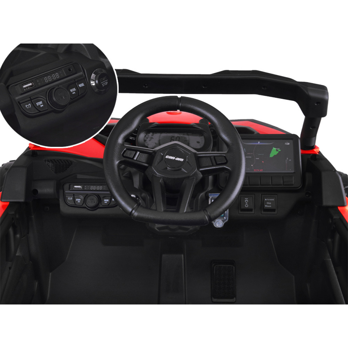 Prietaisų skydelyje yra mygtukų panelė: automobilio įjungimui, žibintų įjungimui, greito/lėto važiavimo režimui, važiavimui pirmyn ir atgal, muzikos įjungimui ir valdymui: dainų keitimas bei garsumo reguliavimas. Automobilis papildomai turi du spalvotus mygtukus, paslėptus po permatoma dangteliu. Šie mygtukai atsakingi už ratų pavaros perjungimą iš 2x2 į 4x4, taip pat už režimo keitimą į pultelio arba rankinį valdymą. Rasti galima MP3, USB įėjimus, leidžiančius prijungti savo muzikos įrangą, todėl vaikas važiuodamas galės klausytis savo mėgstamų dainų, pasakų ir kt. Ant panelės yra ekranas, kuriame galima patikrinti transporto priemonės baterijos įkrovos lygį. Prietaisų skydelyje įmontuota navigacijos imitacija.