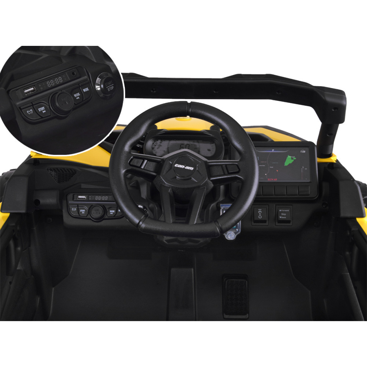 Vairo centre yra du mygtukai: dešinėje muzikos valdymui (perjungti dainas), o kairėje signalo mygtukas. Prietaisų skydelyje yra mygtukai, skirti automobilio įjungimui, šviesų įjungimui, greito/lėto važiavimo pasirinkimui, važiavimui į priekį ir atgal, muzikos įjungimui ir valdymui: dainų keitimas, garsumo reguliavimas. Automobilis taip pat turi MP3 ir USB įėjimus, leidžiančius prijungti savo muzikos įrenginį, kad vaikas galėtų klausytis mėgstamų dainų ar pasakų. Prietaisų skydelyje yra baterijos įkrovos lygio indikatorius ir navigacijos imitacija.