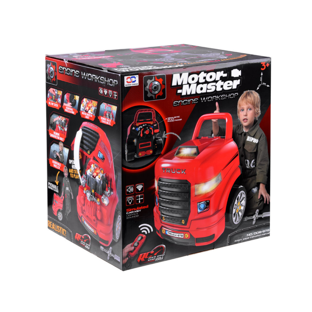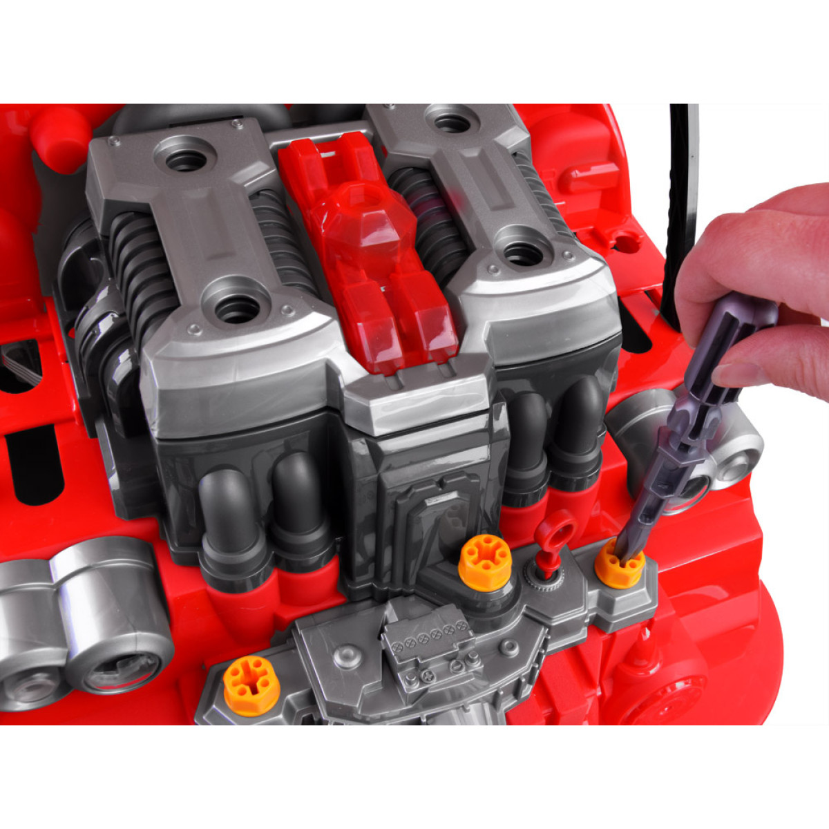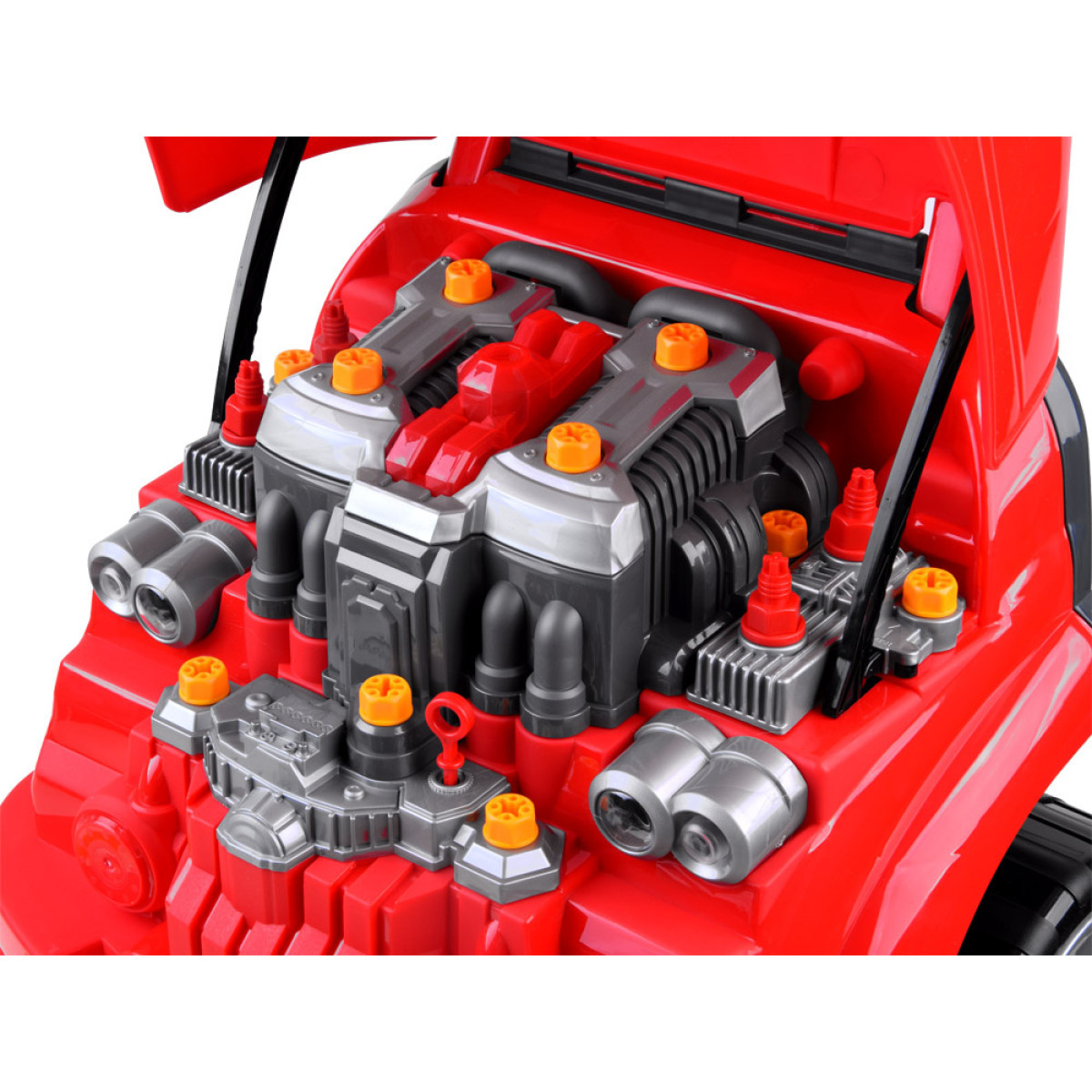 Automobilis su varikliu, kurį galima išardyti. Smulkus mechaniko dirbtuvės rinkinys, sudarytas iš 61 elemento, suteiks daug darbo kiekvienam mažam automobilių mechanikui. Žaislas, pagamintas iš raudonos ir juodos spalvos plastiko, užtikrins puikią pramogą.