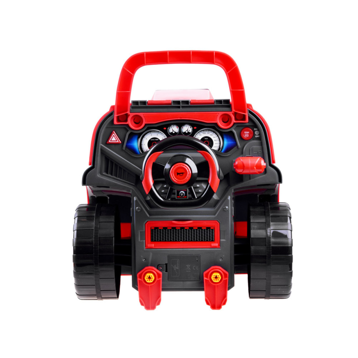 - raudoną start/stop mygtuką - vaikas išgirs užvedamo variklio garsą ir jo veikimą