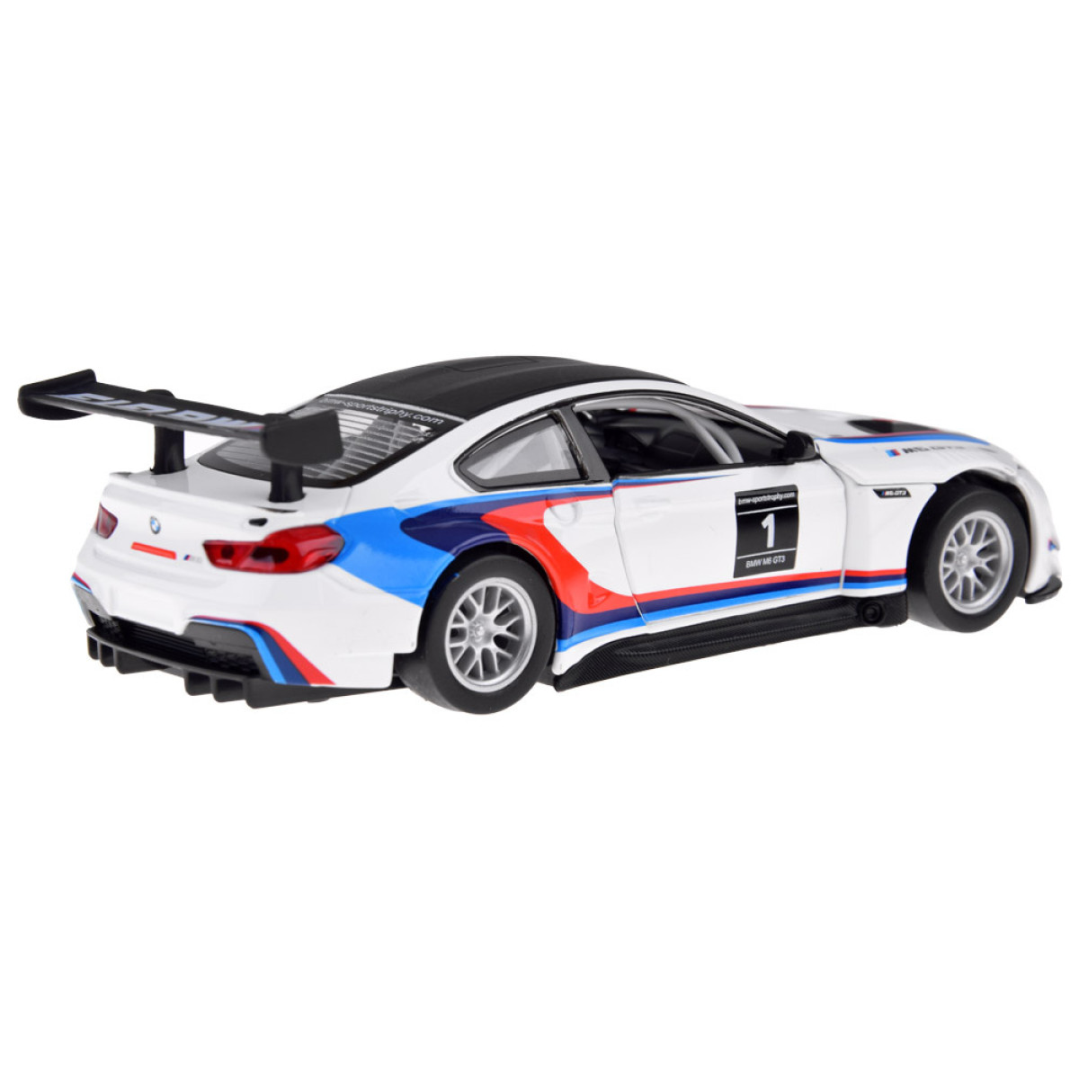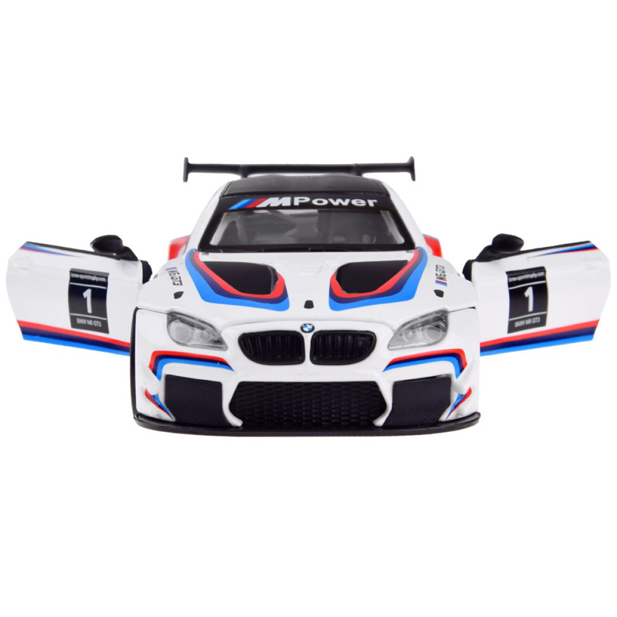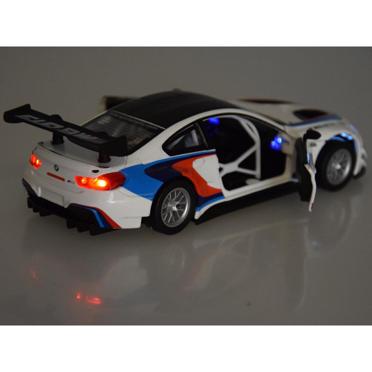 BMW M6 GT3 modelis masteliu 1:32 bus puikus priedas automobilių modelių kolekcijai. Sportinis automobilis yra labai kruopščiai ir estetiškai pagamintas, atkreipiant dėmesį į mažiausias detales, kas be abejo sužavės kiekvieną mažą vairuotoją. Automobilis turi atsidarančias duris, taip pat garso ir šviesos efektus. BMW turi friction power tipo variklį, tai reiškia, kad atsilenkus atgal ant lygios, tvirtos paviršiaus, automobilis važiuos į priekį. Automobilis taip pat veikia stumiamas.