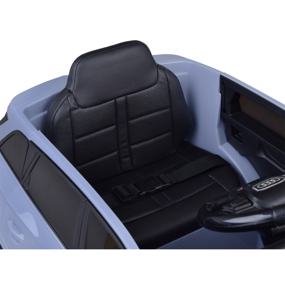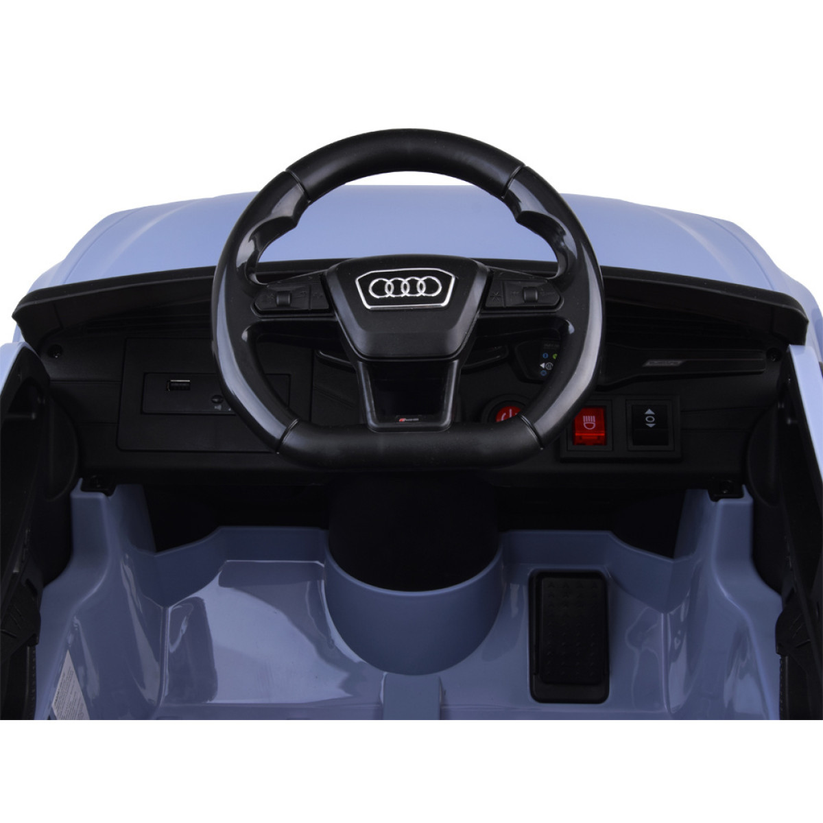 Sportinis Audi turi muzikos skydelį su įrašytomis melodijomis, taip pat MP3 ir USB įėjimus, todėl vaikas gali klausytis savo mėgstamų dainų ar pasakų. Skydelis taip pat turi garso reguliavimą. Multimedijos vairas turi du mygtukus, skirtus dainų keitimui ir signalo įjungimui. Apšviesti skydelio laikrodžiai (imitacijos) suteikia automobiliui realistiškumo. EVA putų ratai užtikrina didesnį važiavimo komfortą. Automobilis turi elektrinį stabdį, kuris veikia nuėmus koją nuo akseleratoriaus pedalo. Vairas ir prietaisų skydelio dangtis papuošti Audi logotipu.