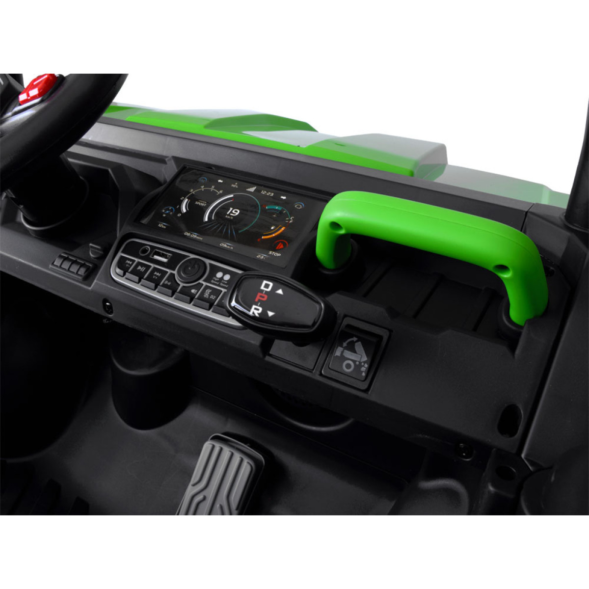 transporto priemonė užvedama mygtuku, o vaikas išgirsta variklio garsą imituojantį efektą. Prietaisų skydelyje yra usb jungtis, mp3 prijungimo galimybė, garso reguliavimas, akumuliatoriaus įkrovos indikatorius, greičio ir apšvietimo valdymas. Vairalazdė leidžia pasirinkti važiavimą pirmyn, atgal arba sustojimą.