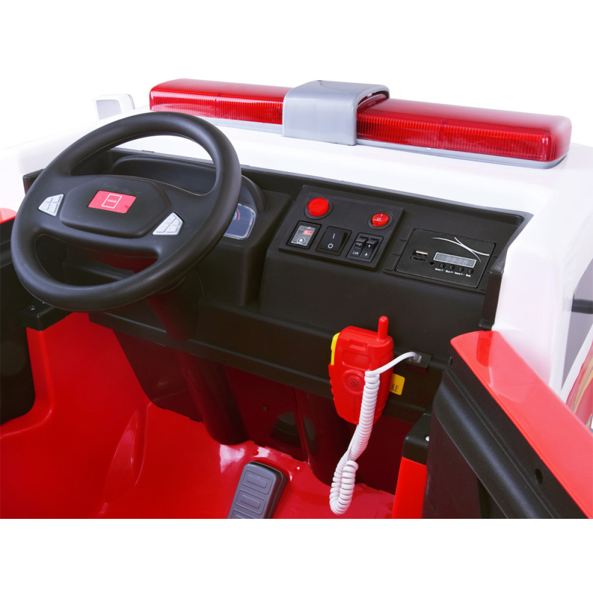 Didelis raudonas elektrinis gaisrinės automobilis sukurtas vaikams, kurie svajoja apie gelbėtojo vaidmenį. Šis modelis turi šviesos ir garso efektus, todėl žaidimas tampa dar tikroviškesnis ir įdomesnis. Automobilyje įrengti svarbūs gaisrinės atributai: megafonas, raudonas švyturėlis, sirenos garsas ir vandens patranka. Tai puikus pasirinkimas mažajam ugniagesiui.