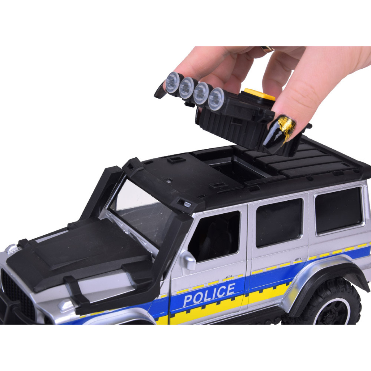 Įveskite savo vaiką į įdomų policijos nuotykių pasaulį su žaislu, kuris tiksliai atkuria tikrąjį policijos visureigį. Kruopščiai pagamintos detalės ir didelis mastelis paverčia šį transporto priemonę ne tik žaislu, bet ir priemone, skatinančia vaizduotę ir kūrybiškumą.