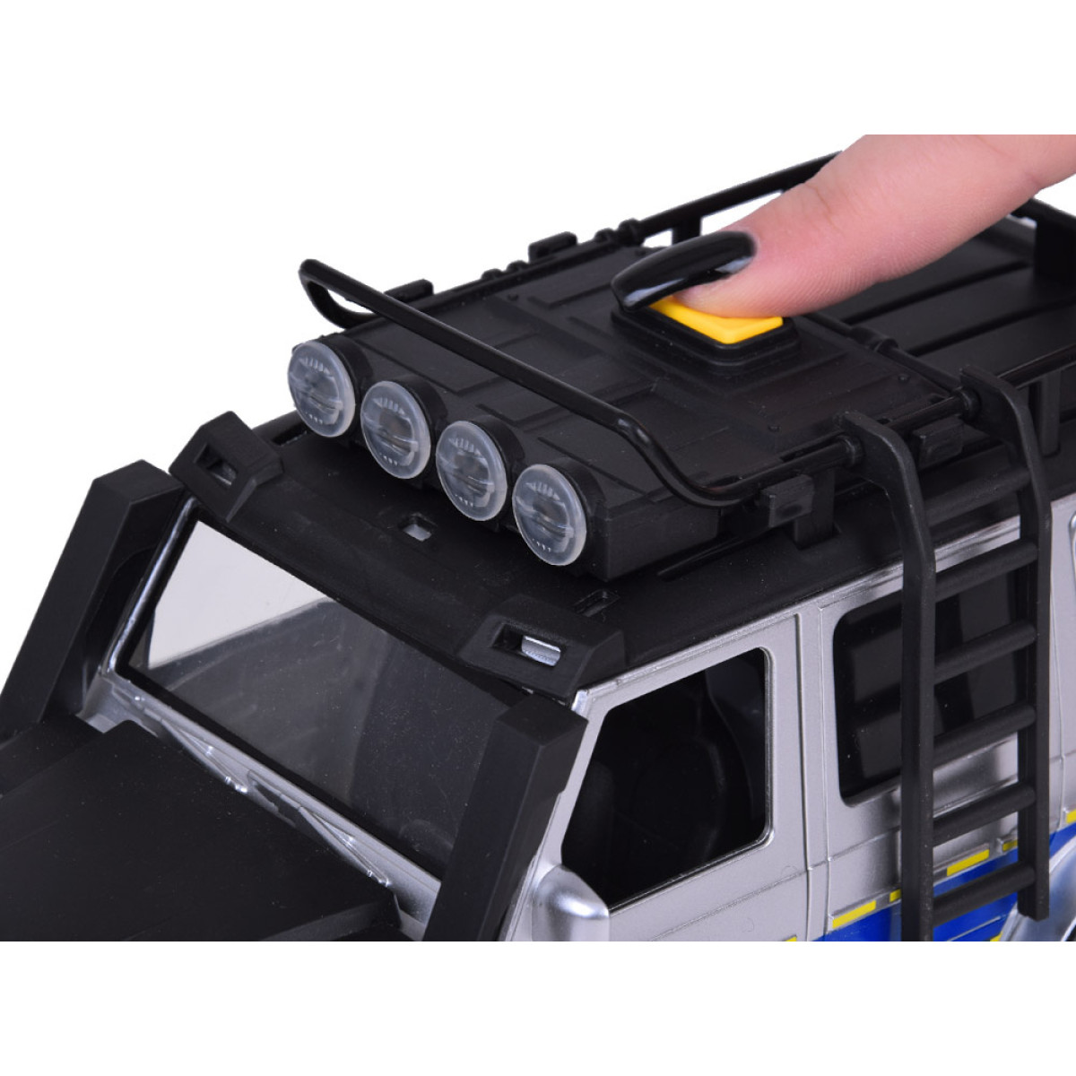 - Šviesos ir garso efektai – paspaudus geltoną mygtuką ant stogo, automobilis skleidžia realistiškus policijos sirenos garsus ir šviesos efektus. Šios interaktyvios funkcijos prideda dinamikos žaidimui ir lavina regos bei klausos koordinaciją.
