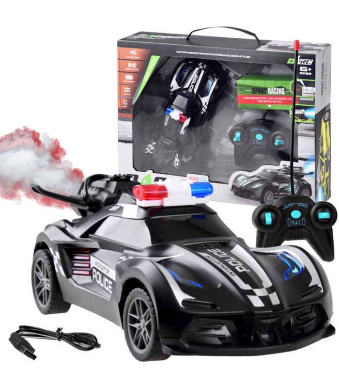 Nuotoliniu būdu valdomas policijos automobilis su dūmais ir šviesomis