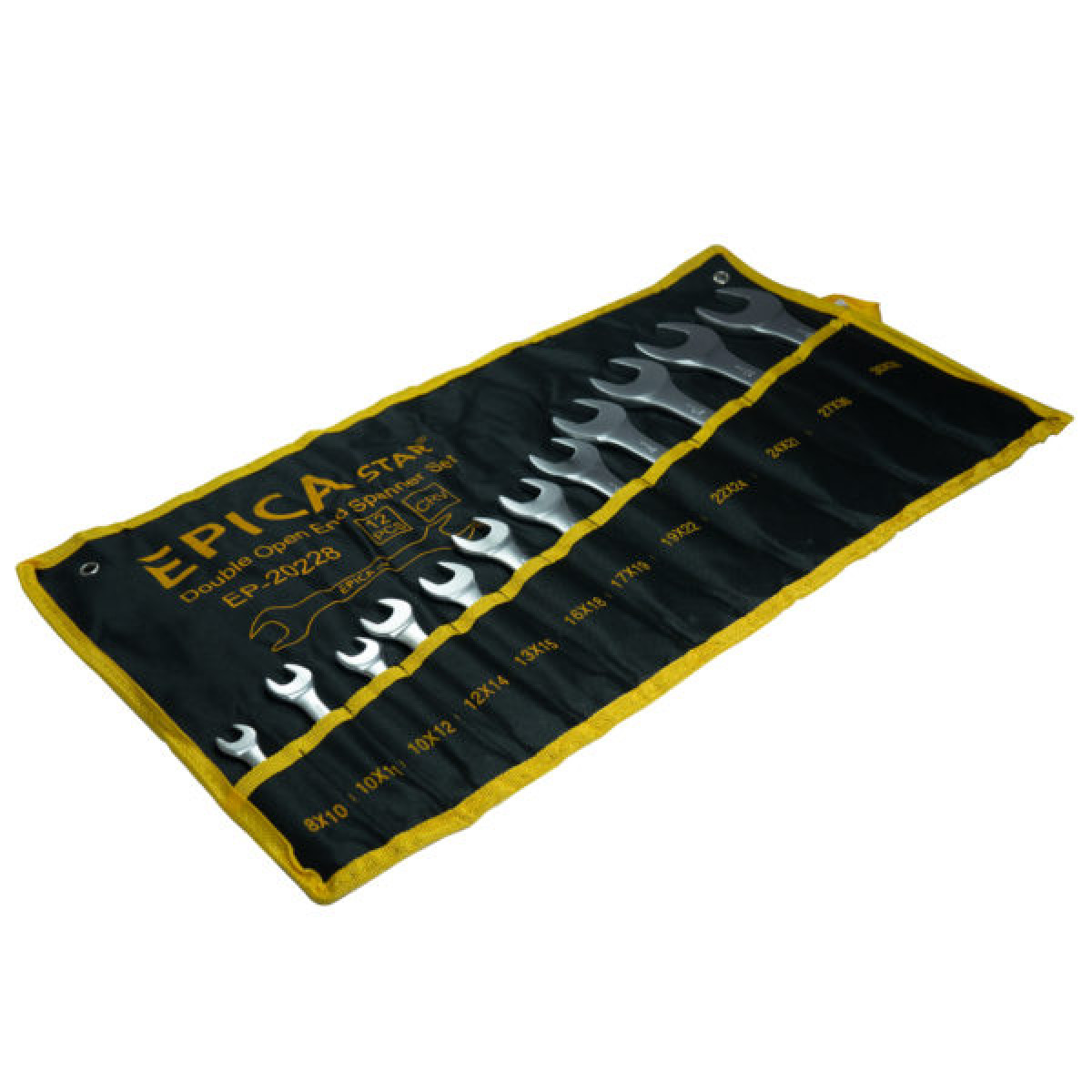 12 vienetų plokščių raktų rinkinys "EPICA STAR EP-20226" pagaminti iš "CHROME VANADIUM" plieno.