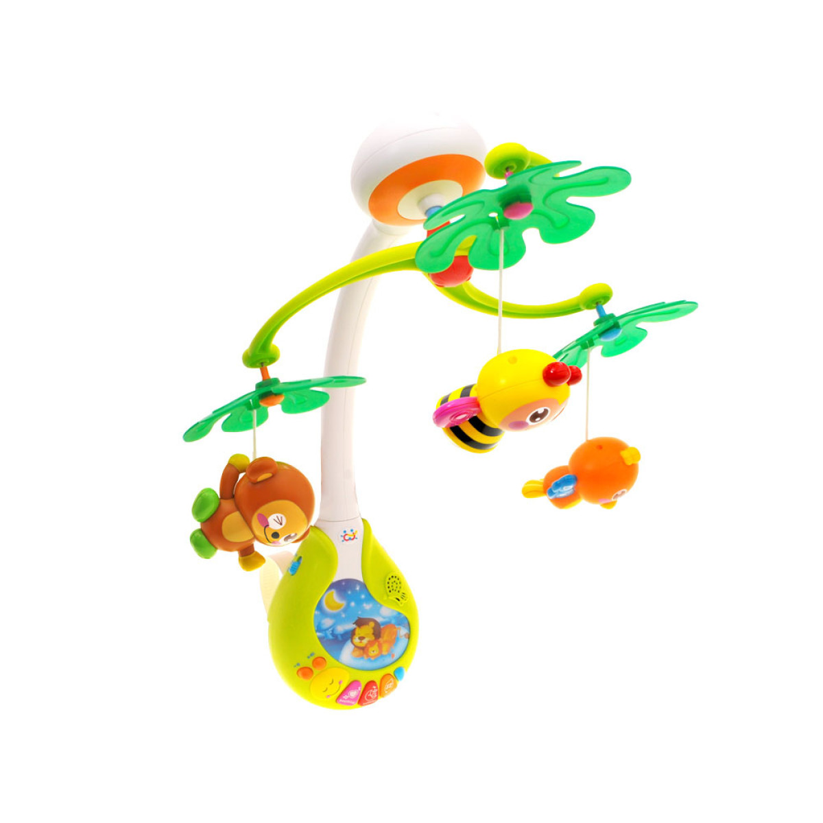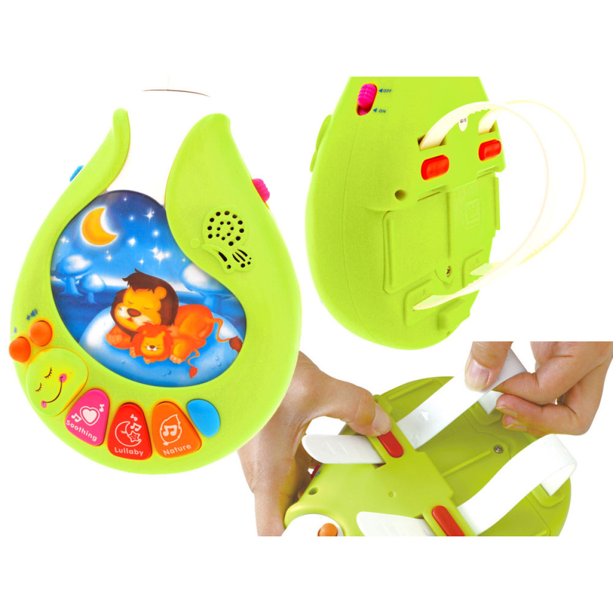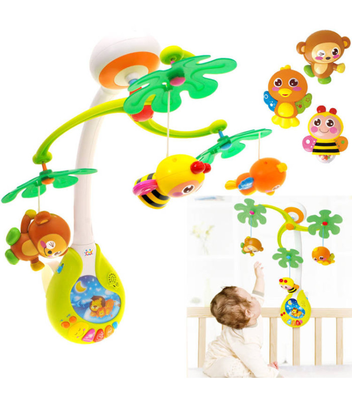 Užmigimas gali būti sudėtingas, ypač smalsiam kūdikiui, tačiau kai virš galvos pasirodo mieli gyvūnėliai ir fone skamba lopšinė, užmigimas tampa tikru malonumu.