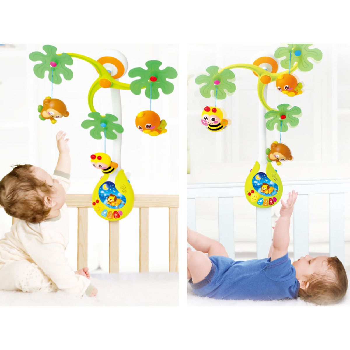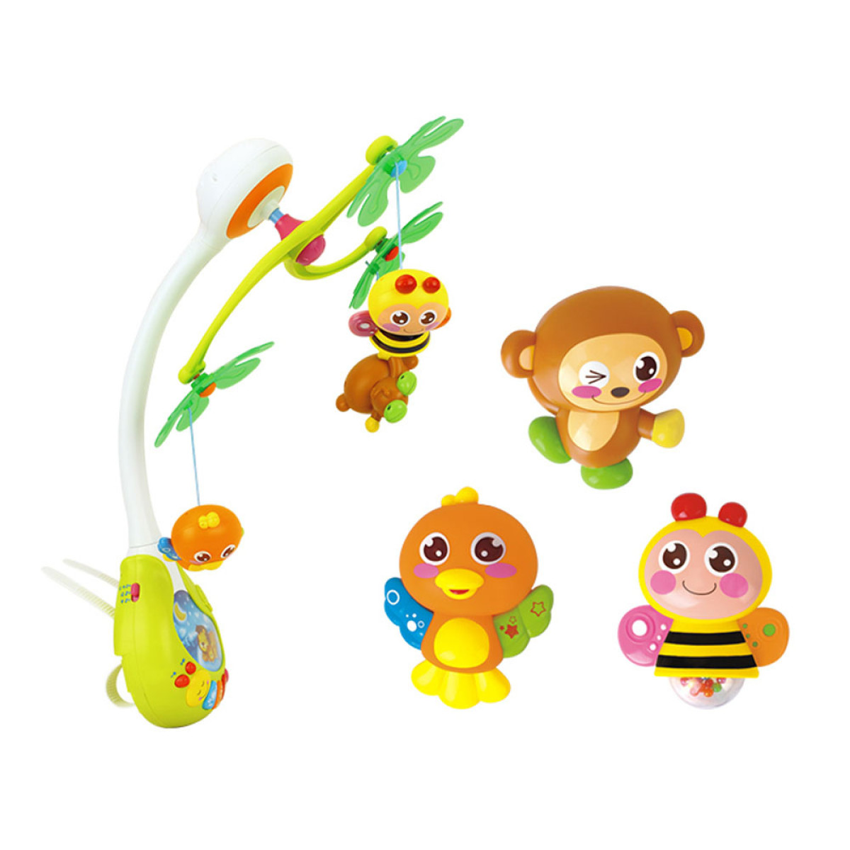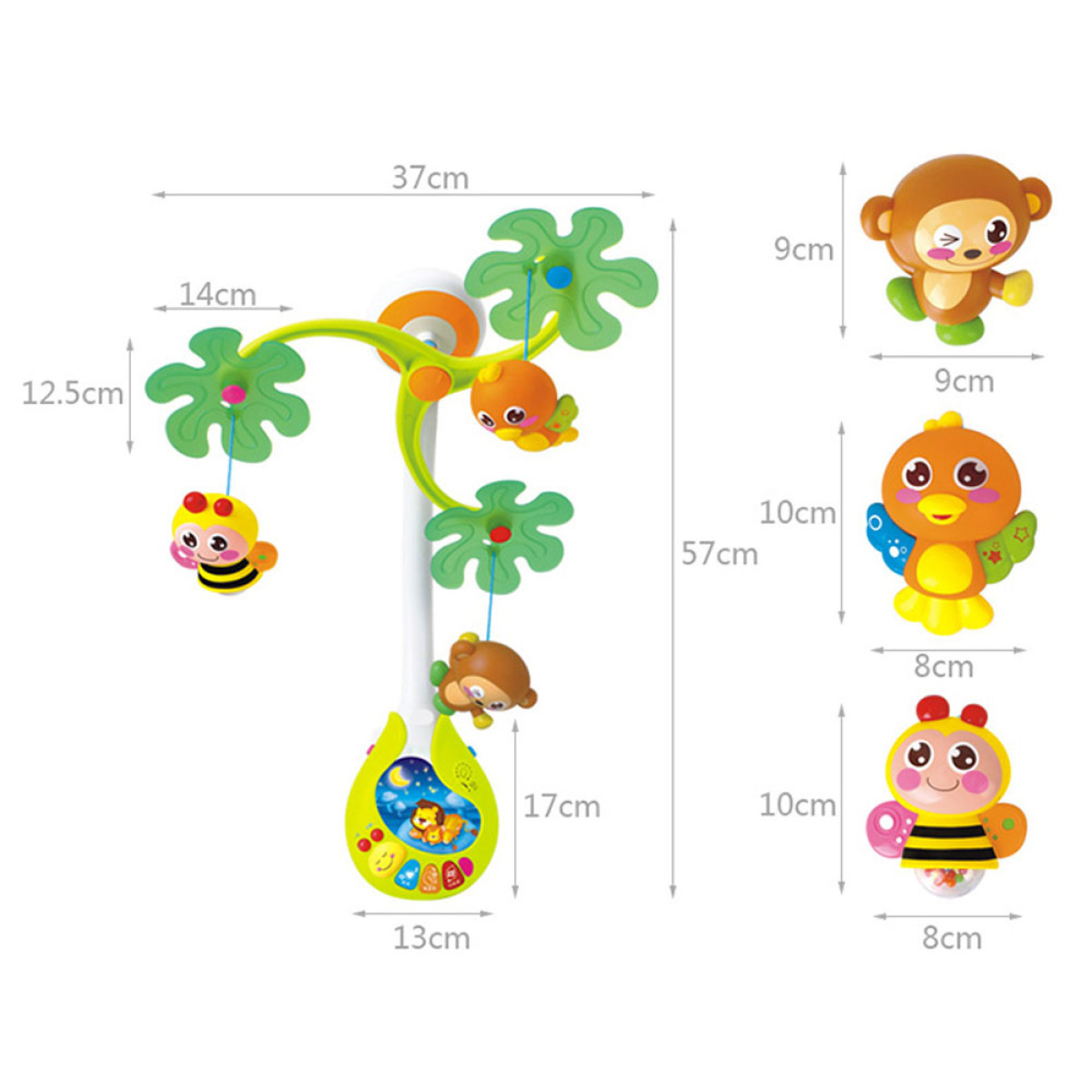 Užmigimas gali būti sudėtingas, ypač smalsiam kūdikiui, tačiau kai virš galvos pasirodo mieli gyvūnėliai ir fone skamba lopšinė, užmigimas tampa tikru malonumu.