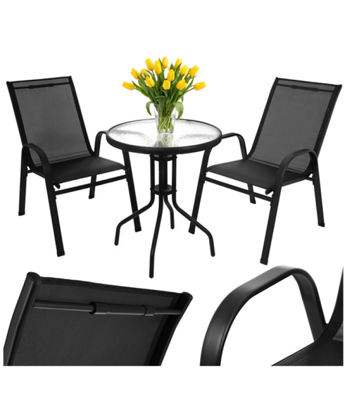 Gardlov sodo baldų komplektas – stalas ir 2 kėdės, puikiai tinkantis balkonui, terasai ar sodui. Sukurkite jaukią poilsio erdvę dviems asmenims! Šis praktiškas 3 dalių sodo baldų komplektas su tvirta konstrukcija ir moderniu dizainu taps funkcionalia kiekvienos erdvės puošmena.