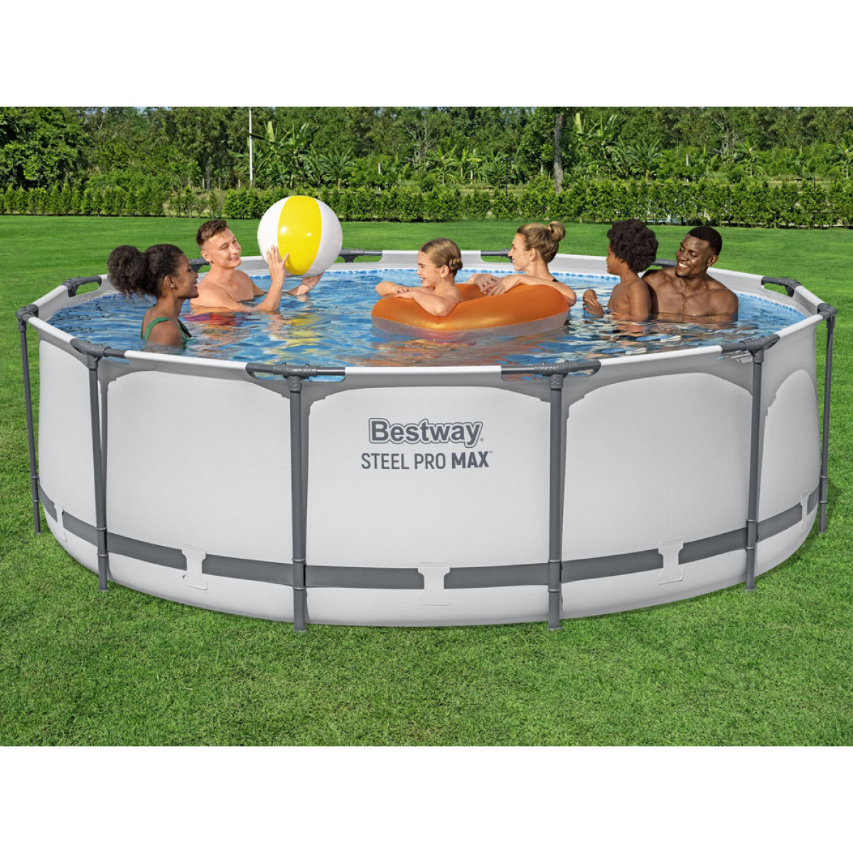 Pagrindinis sodo baseinas su pompa, kurio matmenys yra 366 x 100 cm ir talpa - 9150 l, užtikrina malonų atvėsimą karštą dieną. Šis įspūdingas baseinas su reguliariais matmenimis talpina vaikus ir jų tėvus.