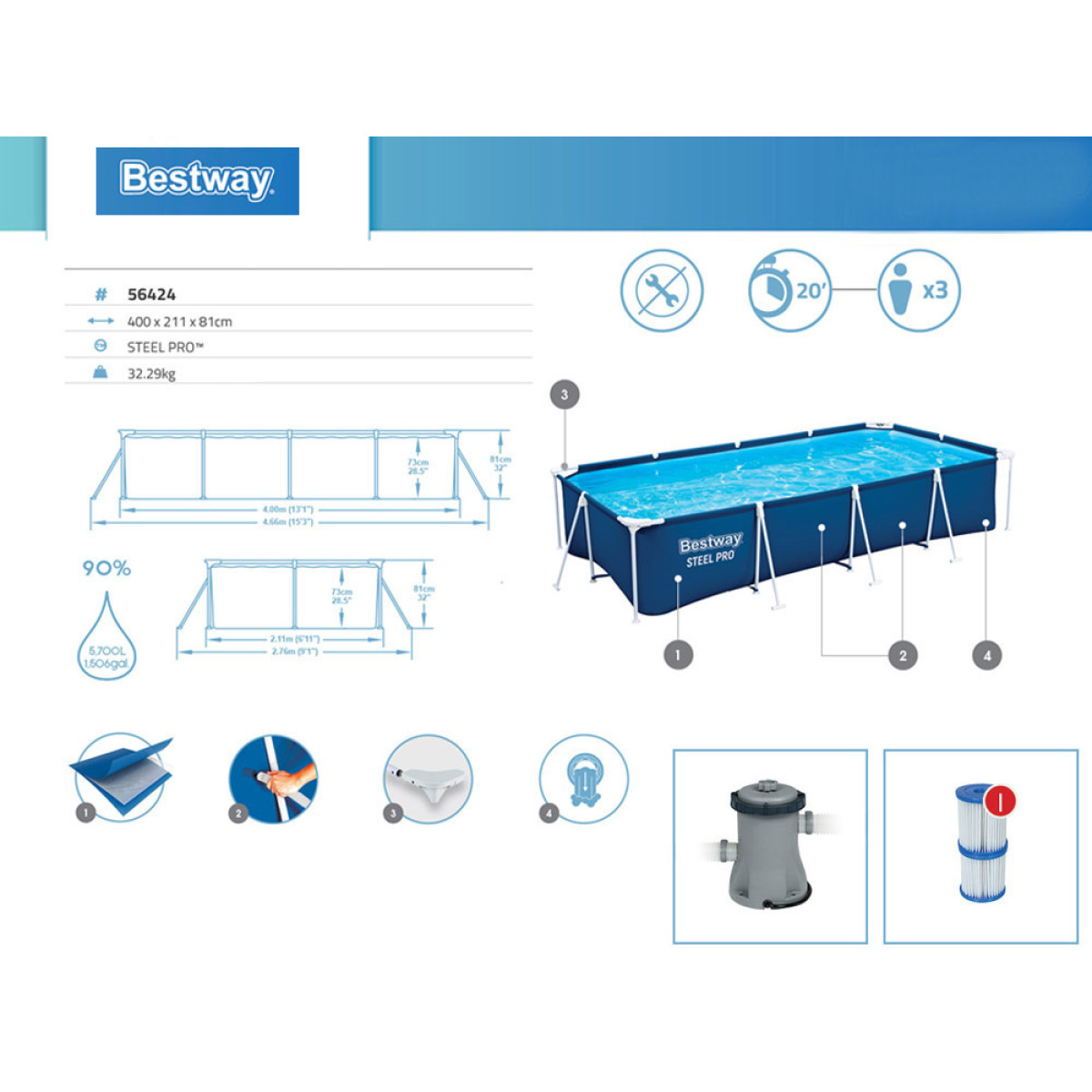 Bestway karkasinis baseinas 400 x 211 cm 8in1 56424