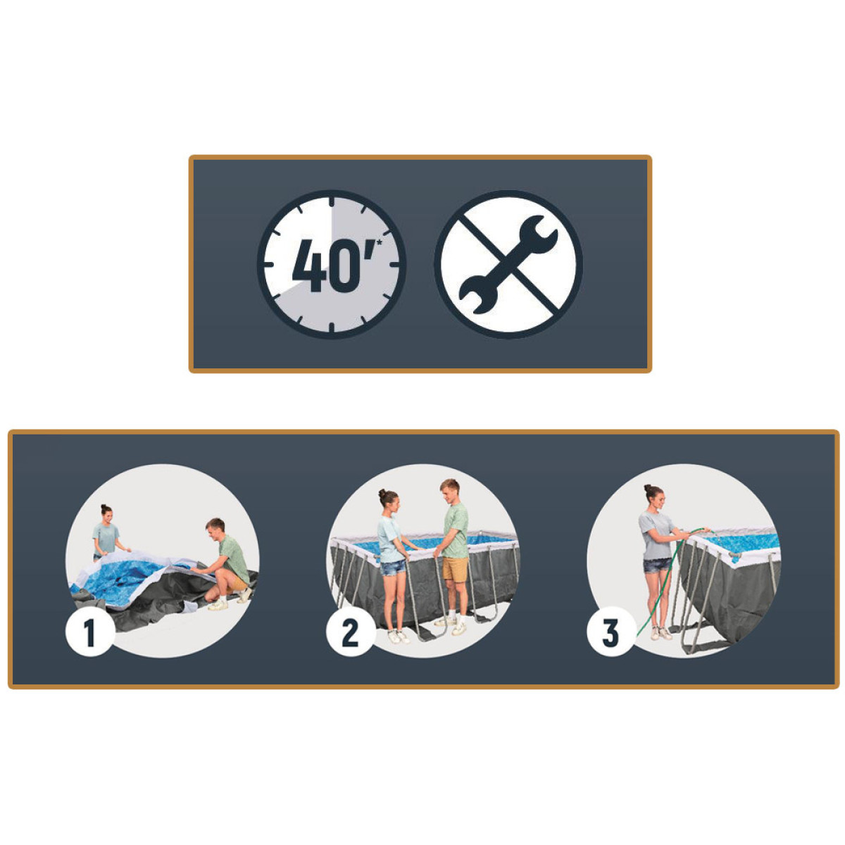 Baseiną papildo patogi ir saugi kopėčios sistema, leidžianti greitai pašalinti laiptelius, kai baseinas nenaudojamas, taip užtikrinant vaikų saugumą. Baseine telpa 8 124 litrai vandens, suteikiant galimybę nardyti. Greitam vandens išleidimui naudojami specialūs vožtuvai. Vandens švarumą palaiko smėlio filtras, kuris užtikrina ilgalaikį malonumą švariu vandeniu.