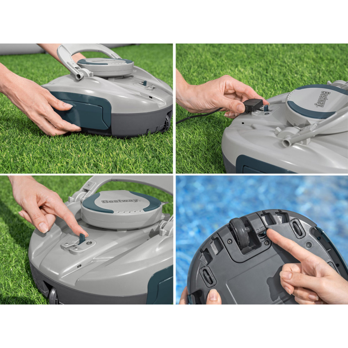 Bestway AquaTronix G150 yra bevielis baseino robotas su įmontuotu akumuliatoriumi, kuris savarankiškai valo baseino dugną, surinkdamas nešvarumus, tokius kaip lapai, smėlis ar dulkės, be poreikio jį prijungti prie žarnos ar filtro. Robotą idealiai tinka naudoti antžeminiams baseinams su lygiu dugnu iki 30 m² ploto (pvz., apvaliems baseinams iki Ø 6,1 m arba stačiakampiams/ovaliems iki 7,32 m ilgio).
