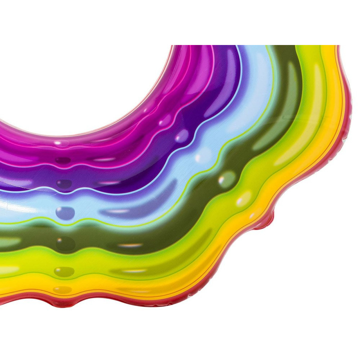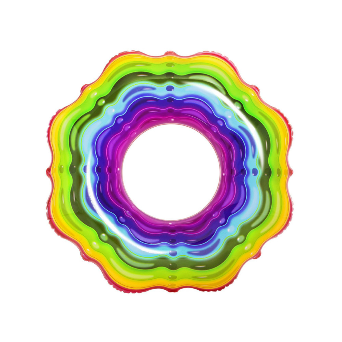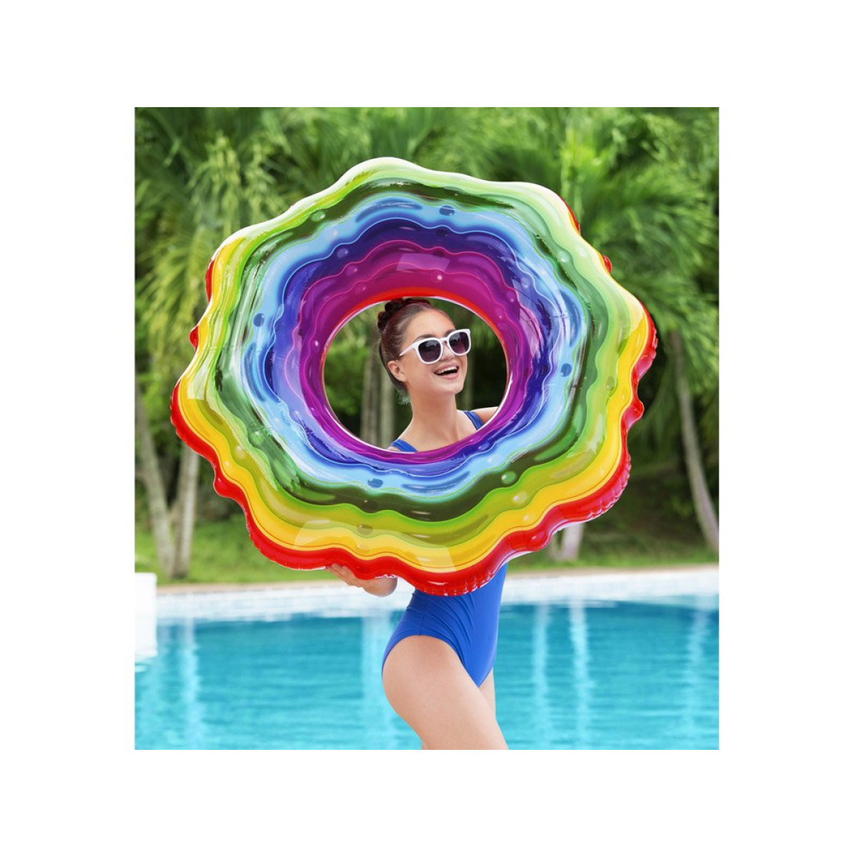 Didelis pripučiamas plaukimo žiedas, kuris primena didžiulę vaivorykštinę galaretką, yra šių metų Bestway pasiūlymas. Žiedas, kurio skersmuo yra 115 cm, pagamintas iš patvarios medžiagos, atsparios UVA spinduliams ir jūros vandeniui. Aptakus dizainas užtikrina komfortišką ir malonų poilsį prie vandens.