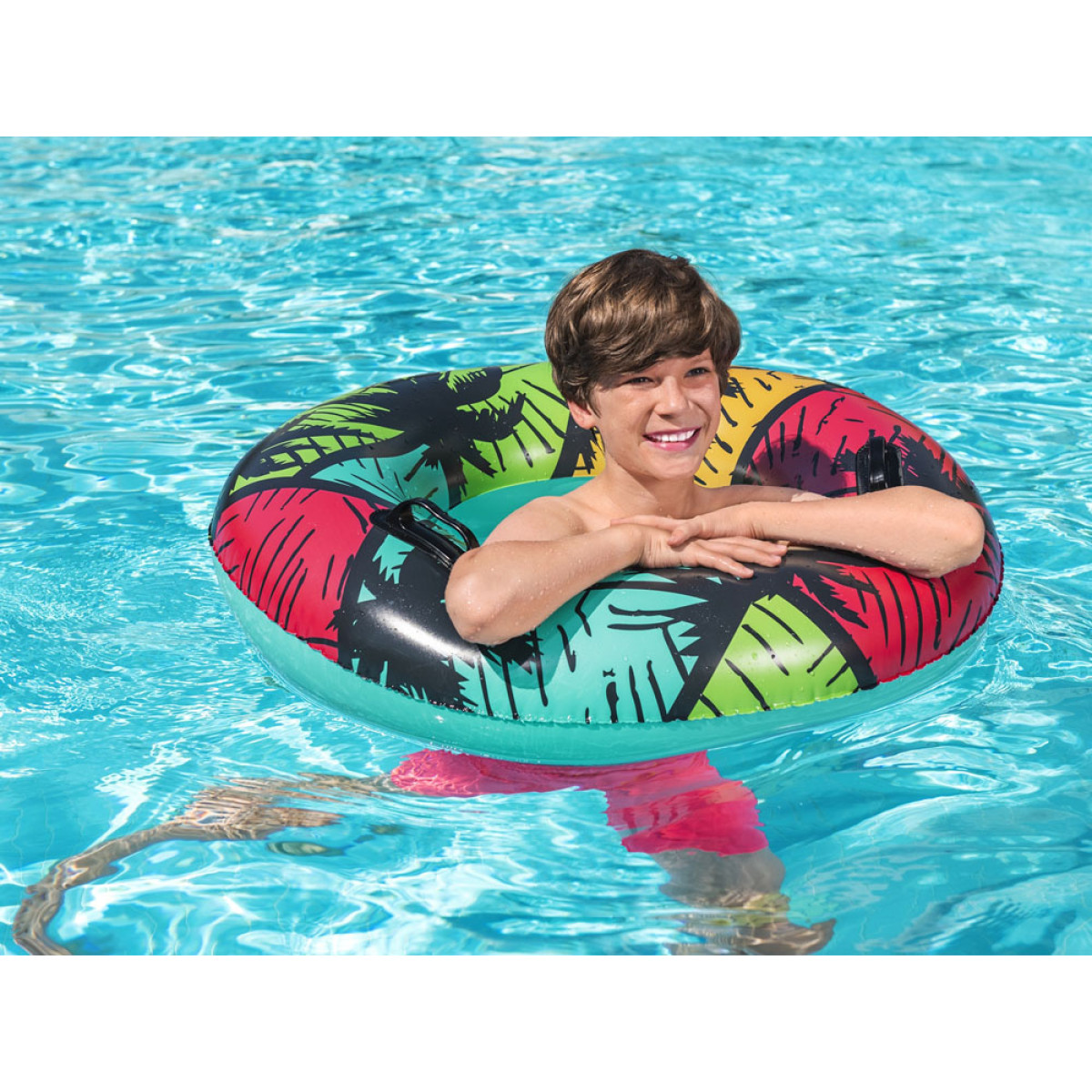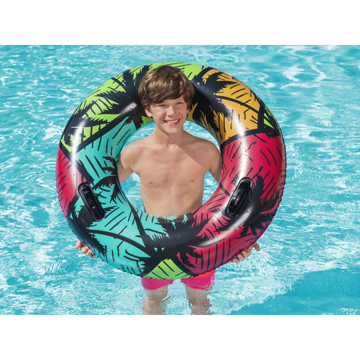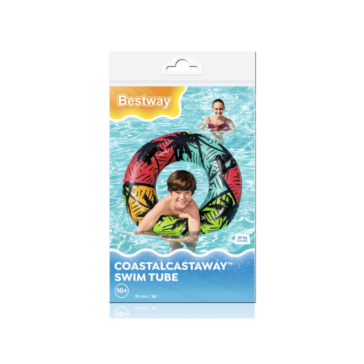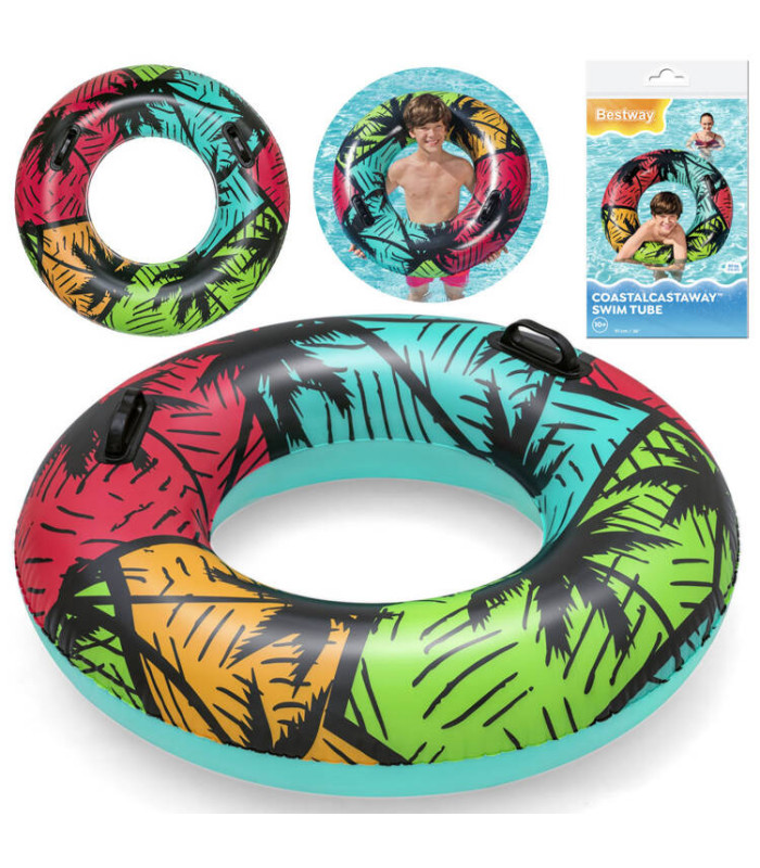 Bestway pripučiamas ratas plaukiojimui 91 cm yra Bestway pasiūlymas vasaros sezonui, kad išsilaikytumėte ant vandens paviršiaus. Ratas skirtas vaikams nuo 10 metų amžiaus. Tropinis dizainas ir ryškios spalvos patrauks kiekvieno vandens pramogų mėgėjo dėmesį. Ratas turi du tvirtus laikiklius, palengvinančius įlipimą ir išlipimą tiems, kurie nepasitiki savimi vandenyje. Ratas pagamintas iš patvarios PVC medžiagos, atsparios pažeidimams ir saulės spinduliams.