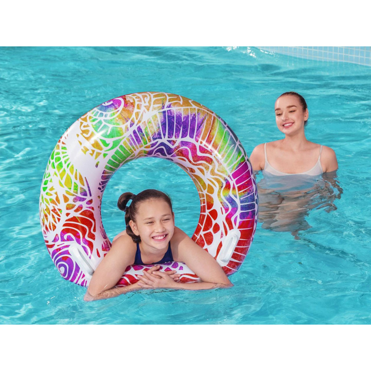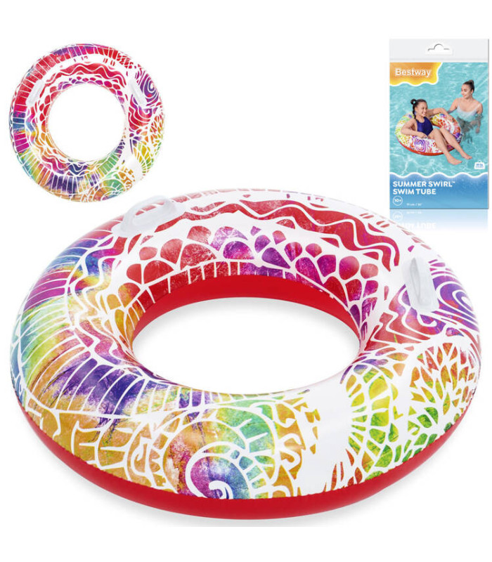 Spalvinga ir didelė Bestway gelbėjimosi rata yra puikus pasirinkimas vasaros pramogoms vaikams nuo 10 metų. 91 cm skersmens ratas turi dvi rankenas, skirtas tiems, kurie jaučiasi nesaugiai vandenyje. Jis pagamintas iš tvirtos PVC medžiagos. Saugumo vožtuvas užtikrina patogų rato naudojimą per vasaros poilsį. Fantastiška vasaros spalvų gama skatina žaisti vandens telkiniuose.