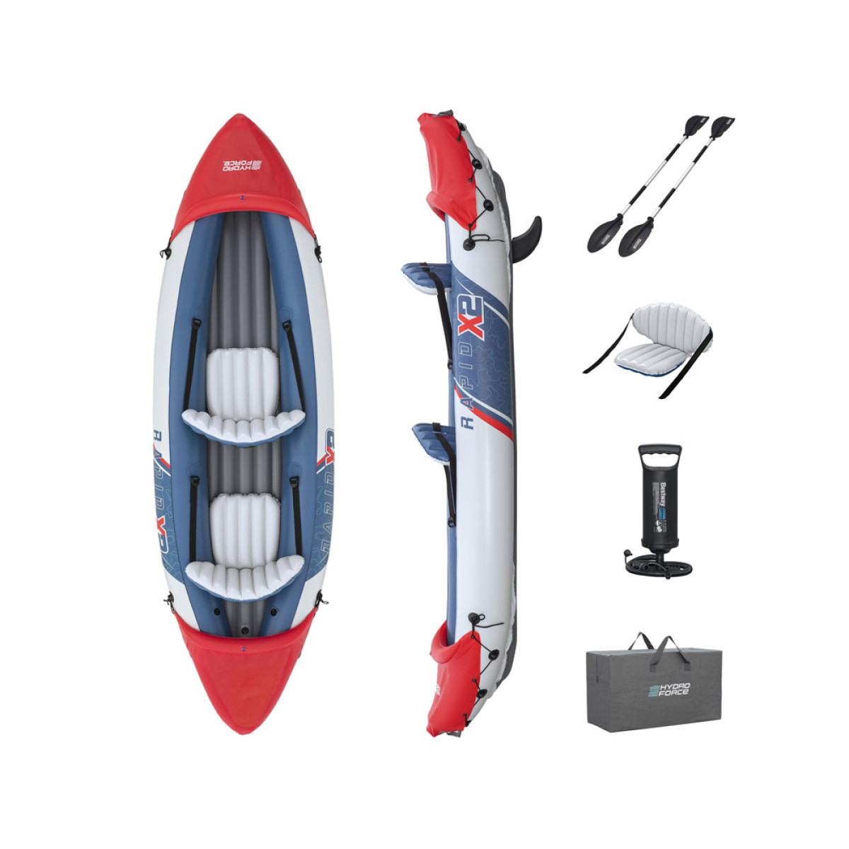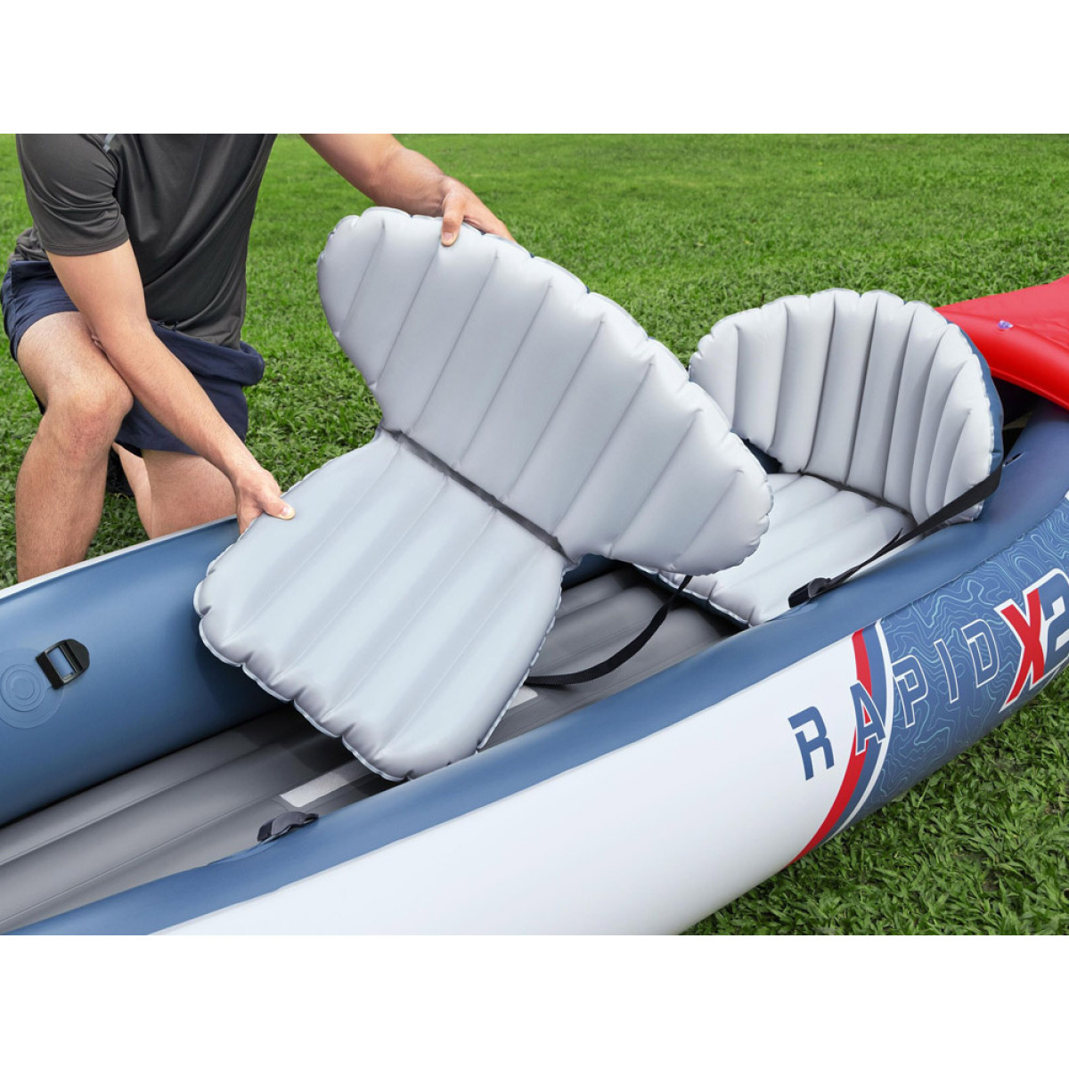 Šis dvivietis pripučiamas kajakas yra puikus pasirinkimas plaukioti ežeruose, upėse ir kanaluose ar mėgautis vasaros poilsiu prie jūros. Jo matmenys yra 321 cm x 88 cm, todėl jis lengvai talpina dvi asmenis, kurių bendra svorio riba siekia 160 kg.