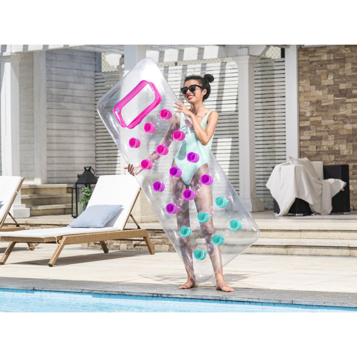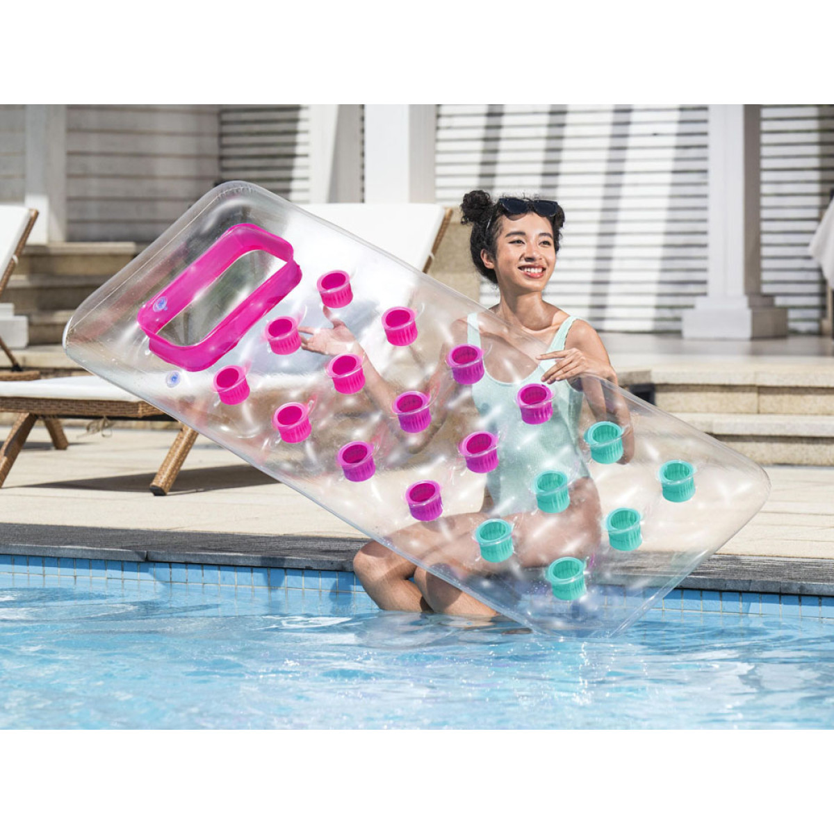 Mūsų Bestway pripučiamas čiužinys plaukimui puikiai tinka ilsėtis vandenyje. Spalvingas dizainas su skaidriu langeliu suteikia ypatingą malonumą. Šis čiužinys puikiai atrodys ant bet kurios paplūdimio linijos.