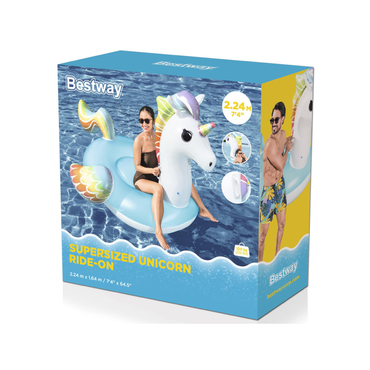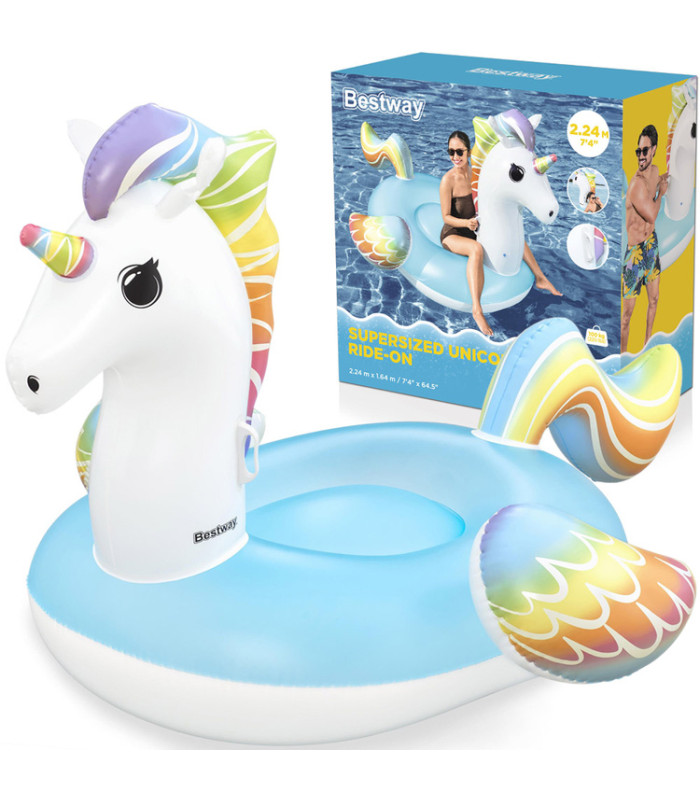 Bestway Pripučiamas čiužinys plaukiojimui su rankenomis vienaragis 224x164 cm