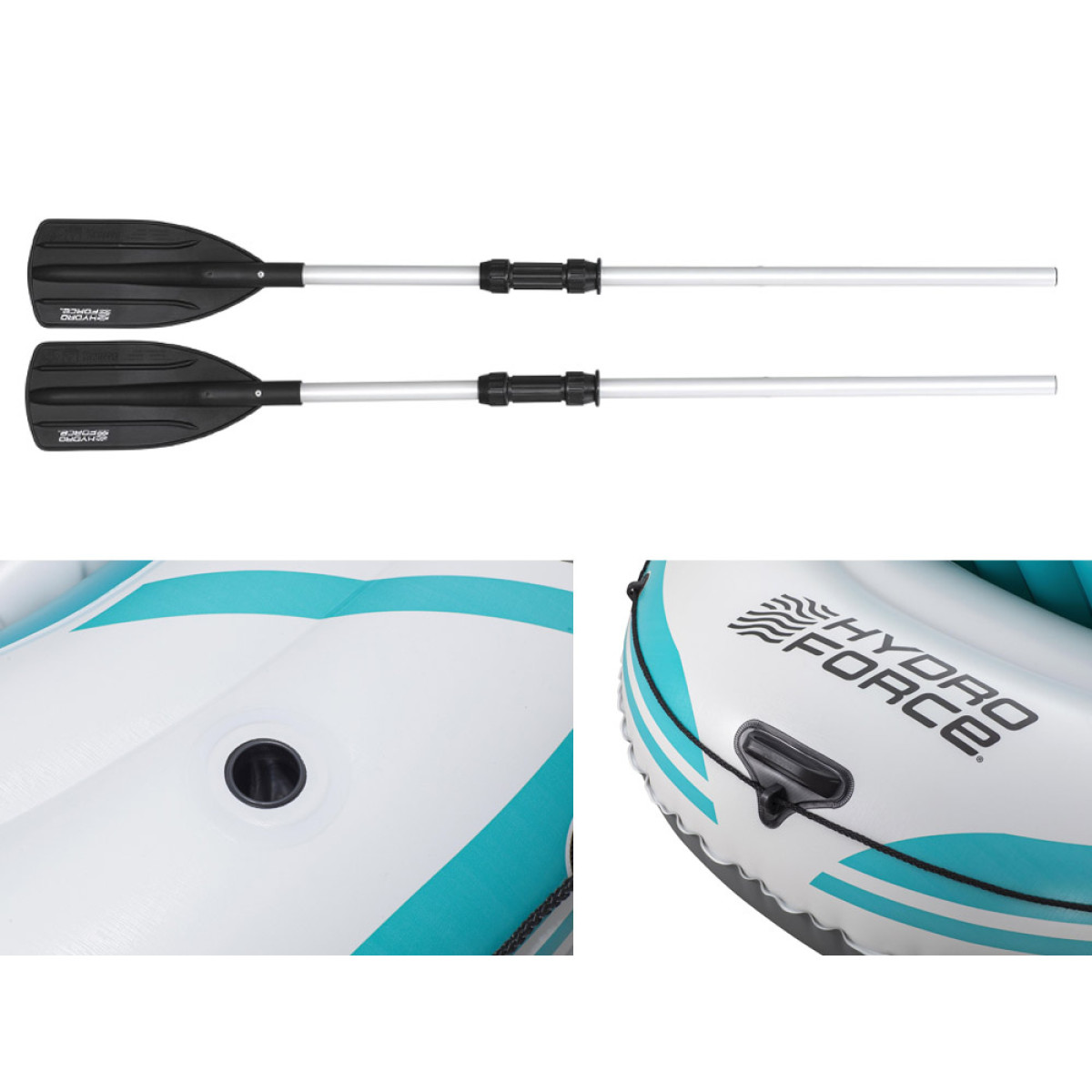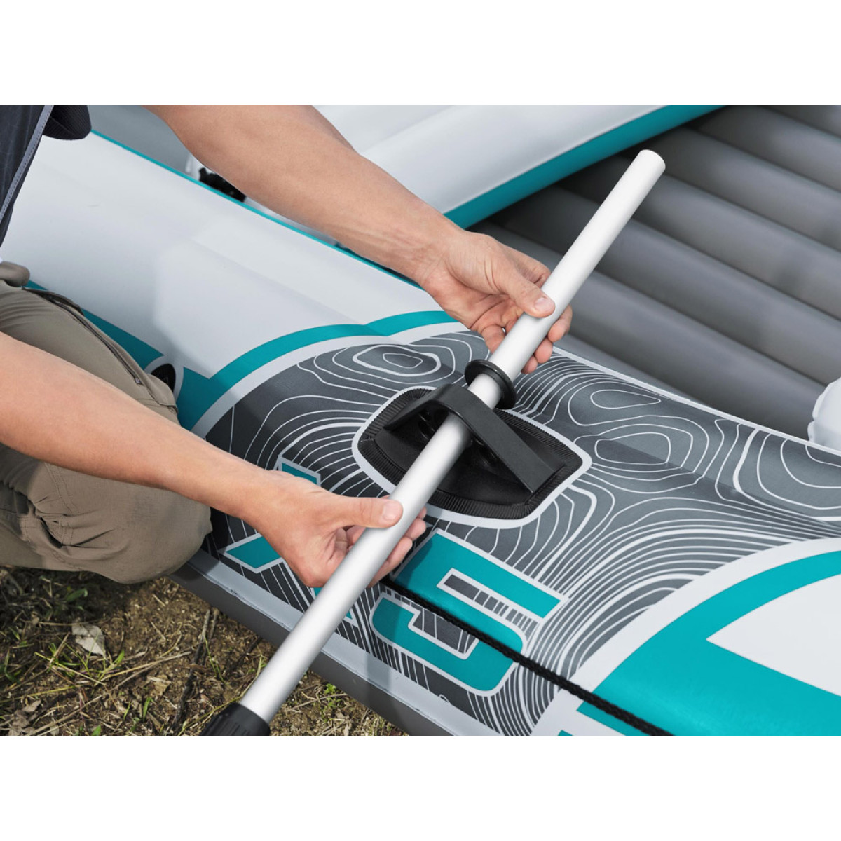 Rinkinys apima tvirtas irklus bei integruotus laikiklius meškerėms, leidžiančius mėgautis plaukimu ir žvejyba. Snapinių klamrų dėka irklai liks savo vietoje vandens pramogų metu. Taip pat yra variklio laikikliai, skirti naudoti su 1,5 AG (1,1 kW) varikliu (variklis ir laikiklis nepridedami).