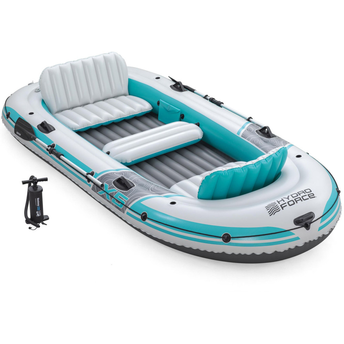 Pontonas Hydro-Force™ Adventure Elite™ X5, matmenys 364 x 166 cm, yra idealus pasirinkimas poilsiui ant vandens. Šis pontonas, skirtas daugiausia 5 suaugusiems, garantuoja patvarumą ir komfortą mėgaujantis vandens pramogomis.