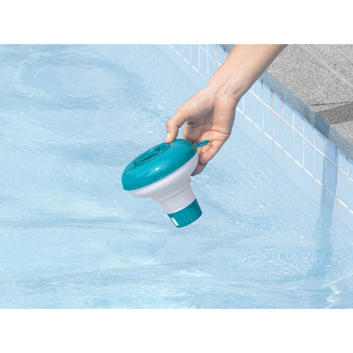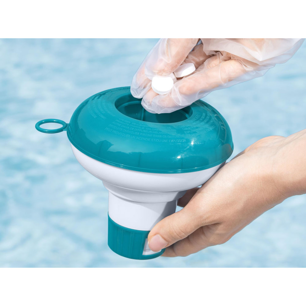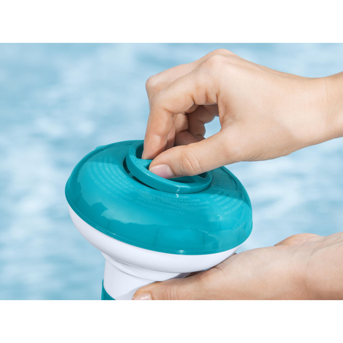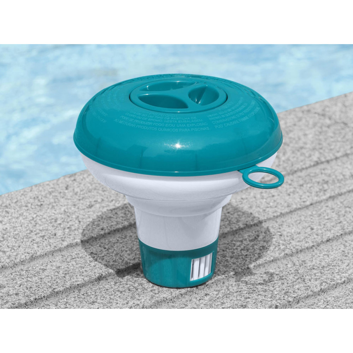 Dozatorius chemikalams leidžia visiškai kontroliuoti ir saugiai dozuoti chemines medžiagas. Tiesiog užpildykite dozatorių chemija, nustatykite dozavimo intensyvumą su specialiu reguliuojamu 4 pozicijų žiedu ir įdėkite jį į vandenį. Dozatorius pagamintas iš UV spinduliams atsparios medžiagos, todėl jį galima naudoti daug sezonų. Dozatorius padės jums išlaikyti vandenį švarų, suteikdamas jums ir jūsų vaikams saugumą ir galimybę atsigaivinti karštomis dienomis.