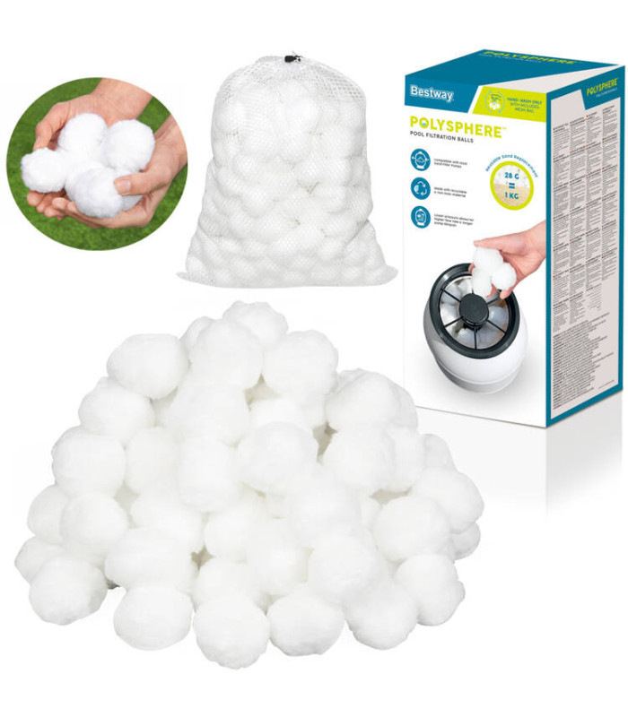 Bestway Flowclear Filtravimo Kamuoliukai yra naujausias Bestway produktas, skirtas baseinų filtravimui. Gaminami iš 100% PET plastiko, šie lengvi ir ilgaamžiai kamuoliukai yra puiki alternatyva sunkiam ir nepatogiam smėliui. Kokybiška filtracija užtikrina, kad baseino vanduo būtų kristališkai švarus, todėl jūs ir jūsų šeima galėsite mėgautis gaivinančiomis maudynėmis per visą vasaros sezoną.