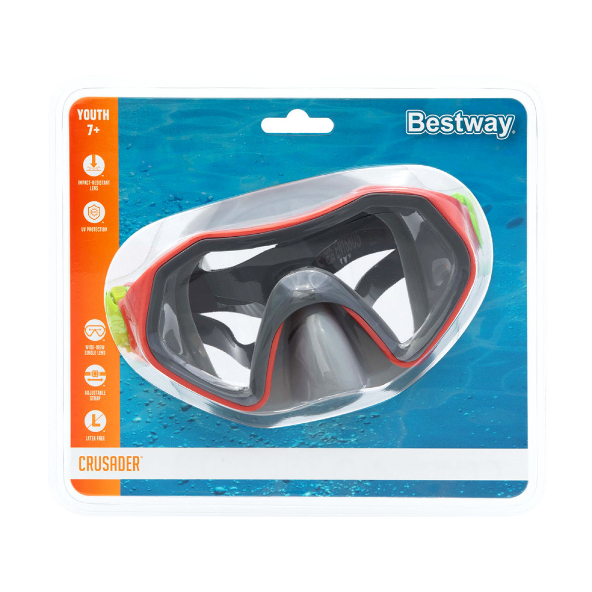 Spalvota Bestway® Crusader plaukimo kaukė skirta vaikams nuo 7 metų amžiaus ir puikiai tinka pirmosioms plaukimo pamokoms.