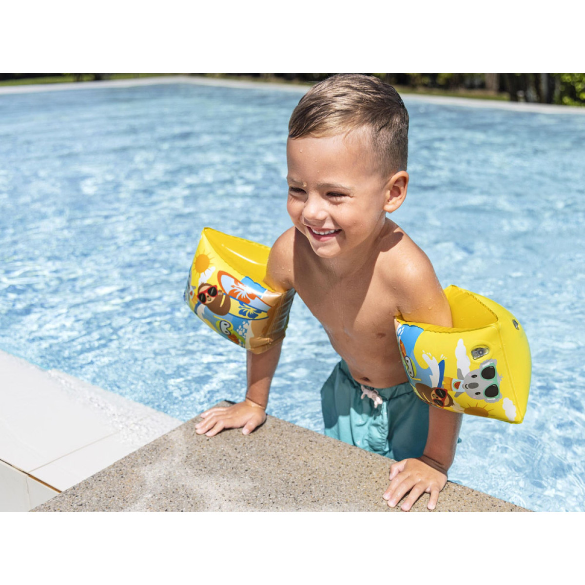 Spalvinga vasaros grafika su gyvūnais ir ryški geltona spalva užtikrins, kad vaikas būtų gerai matomas baseine, jūroje ar ežere. Rankovės yra labai lengvos ir puikiai pritaikytos, todėl nevaržo judesių tiek plaukimo, tiek žaidimų metu. Skirtos vaikams nuo 3 iki 6 metų amžiaus.