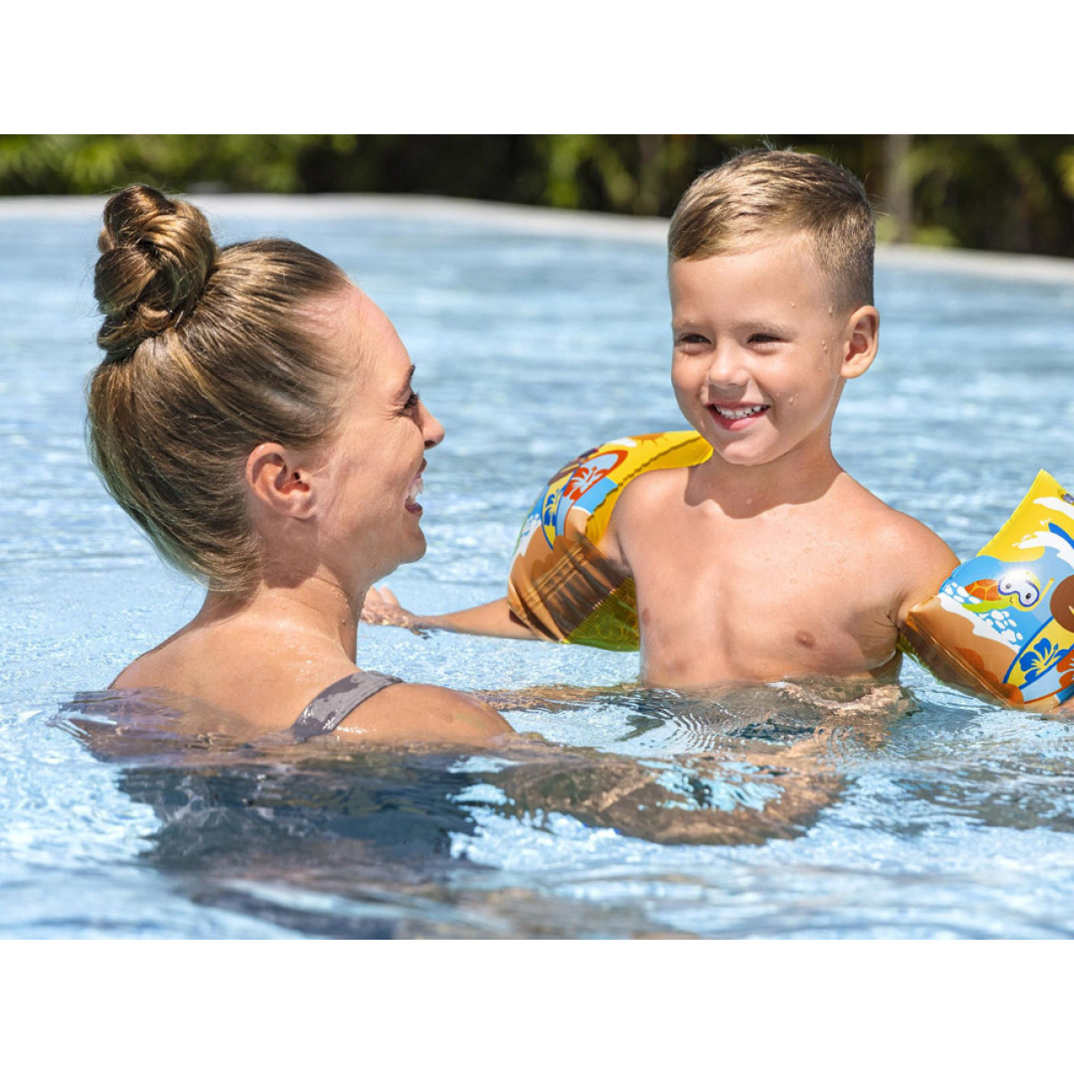 Rankovės skirtos tik naudojimui vandenyje, kur gylis leidžia vaikui jausti dugną, prižiūrint tėvams.