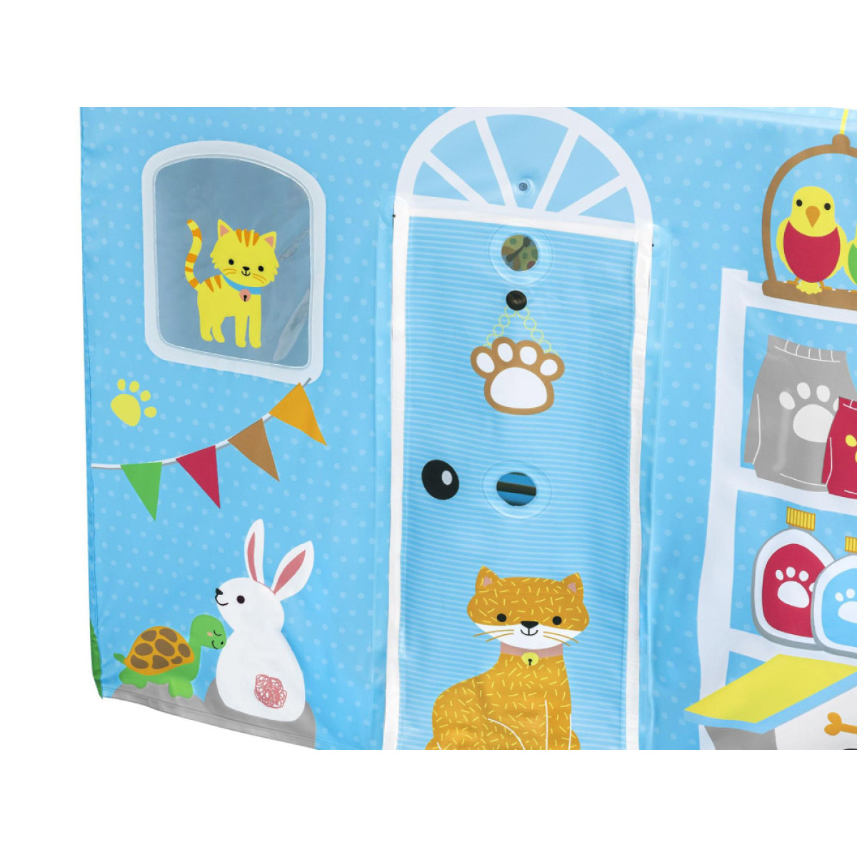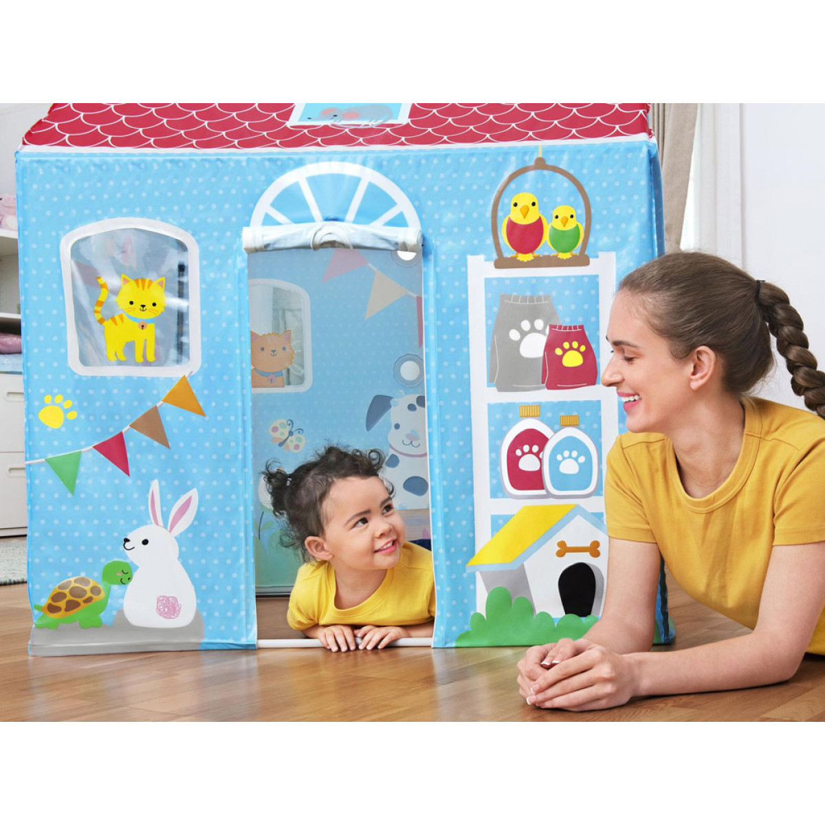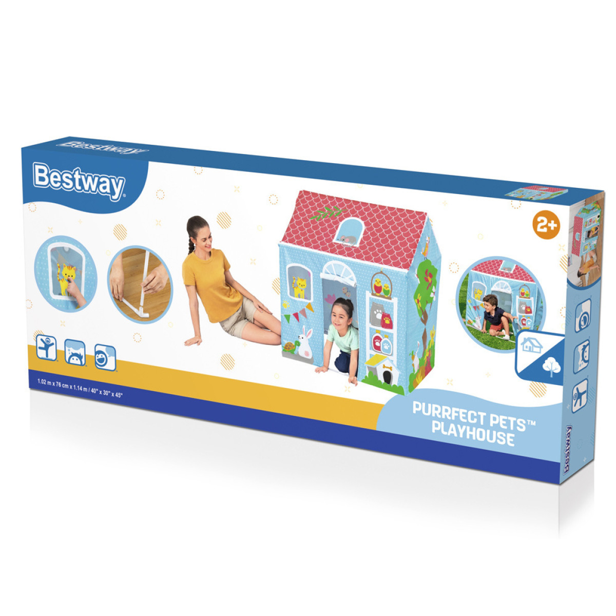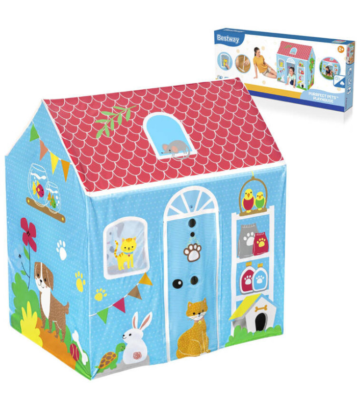 Vaikų namelis iš Bestway puikiai tinka tiek žaidimams sode, tiek vaiko kambaryje. Šis mielas namelis yra kruopščiai ir tiksliai pagamintas, naudojant malonias spalvas ir linksmas gyvūnėlių iliustracijas. Namelio konstrukcija susideda iš plastikinių elementų, todėl ji yra greitai ir lengvai surenkama. Namelis turi atveriamas (pakeliant į viršų) duris ir du permatomus langelius. Stogas, sienos ir langai pagaminti iš PVC medžiagos, todėl jie yra atsparūs lietui.