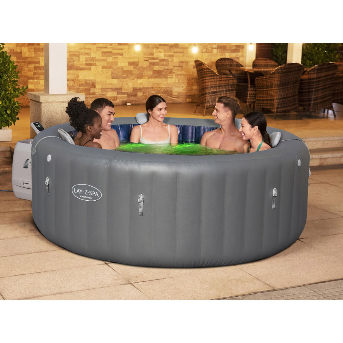 Lay-Z-Spa Santorini Smart HydroJet Pro 7 iš gerai žinomo Bestway prekės ženklo yra naujausias šio sezono pasiūlymas. Modelis Santorini yra puikus pasirinkimas, jei ieškote nebrangaus, nešiojamo spa, kuriame telpa iki 7 asmenų. Pripučiamas jacuzzi yra idealus sprendimas tiems, kurie vertina prabangų poilsį su privatumu.