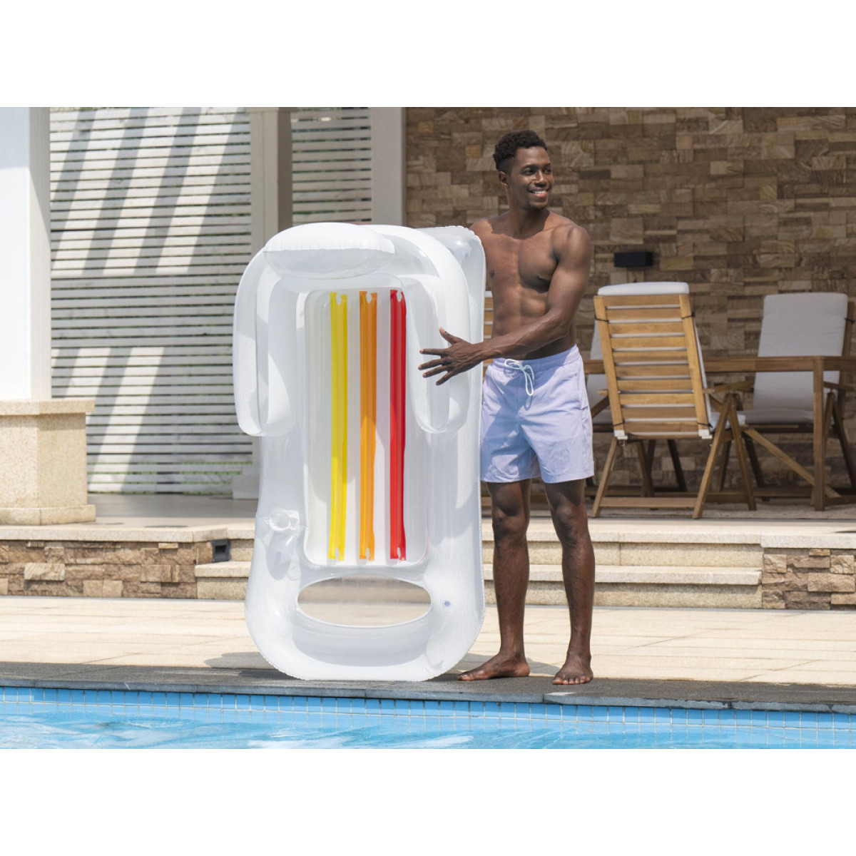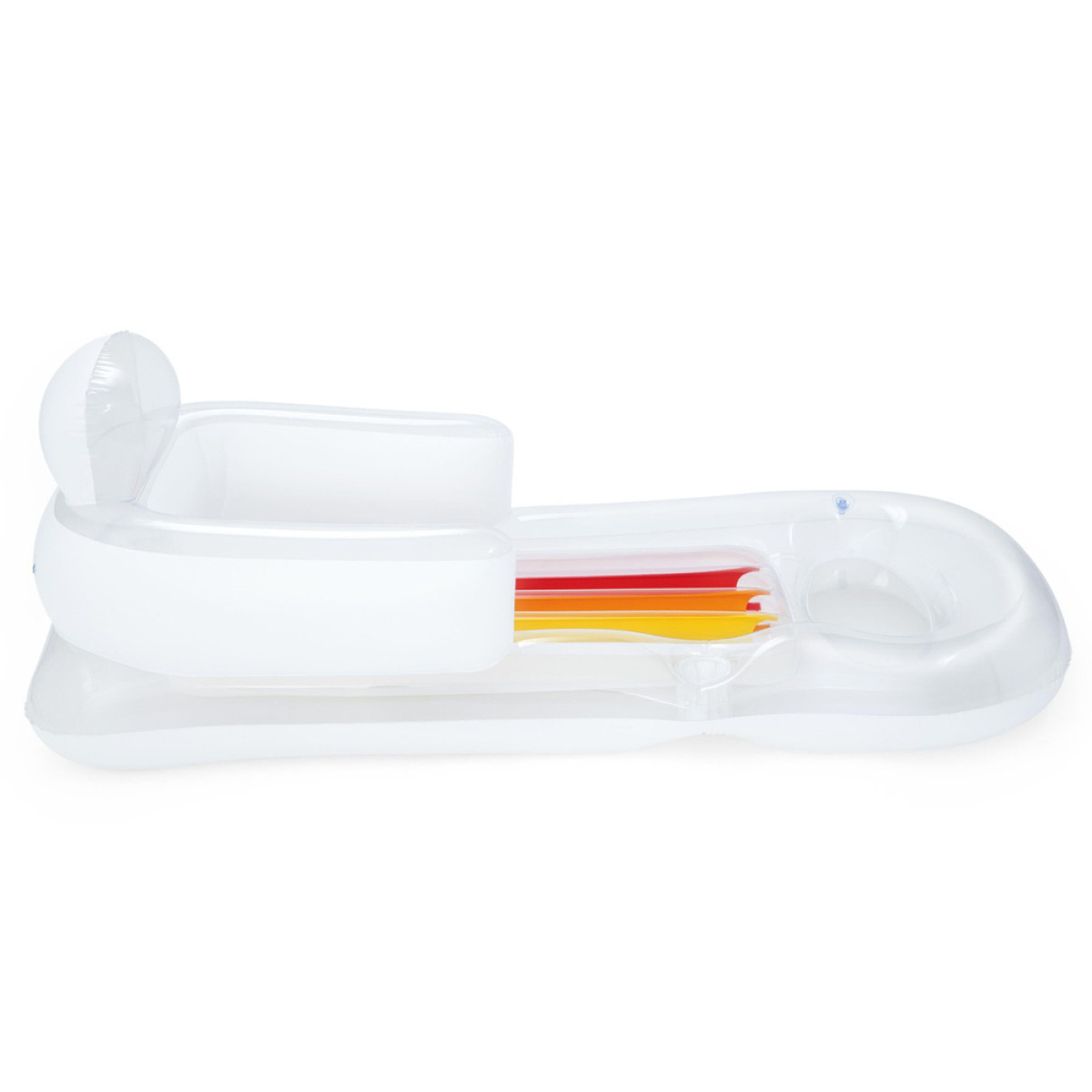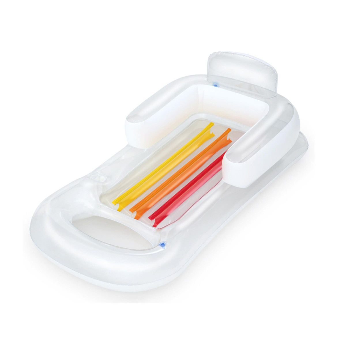 Spalvingas daugiafunkcinis čiužinys su pripučiamomis šoninėmis dalimis ir atlošu suteiks neįtikėtiną komfortą vasaros poilsio metu. Čiužinys pagamintas iš patvarios medžiagos gražios mėlynos spalvos, su permatomais ir spalvotais elementais.