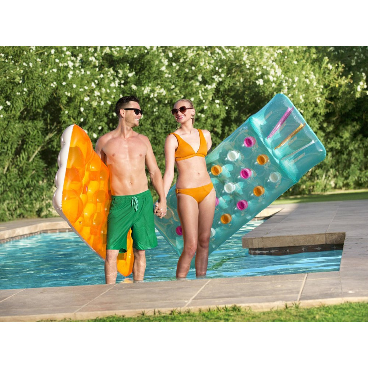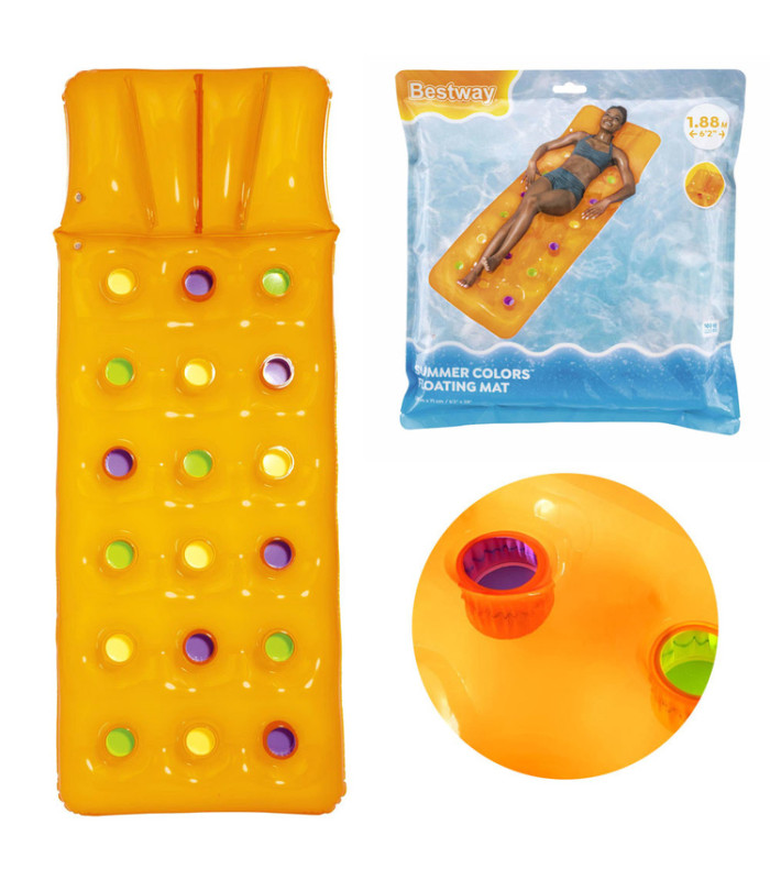 Šis nuostabus pripučiamas čiužinys puikiai tiks jūsų vasaros atostogoms. Ryškių spalvų čiužinys su pagalve suteiks malonumą poilsio metu. Čiužinys pagamintas iš PVC medžiagos ir gali išlaikyti iki 90 kilogramų. Jo matmenys 188 x 71 cm, todėl lengvai talpina suaugusį žmogų. Komplekte yra remonto lopas, jei paviršius būtų pažeistas.