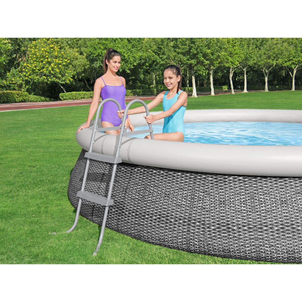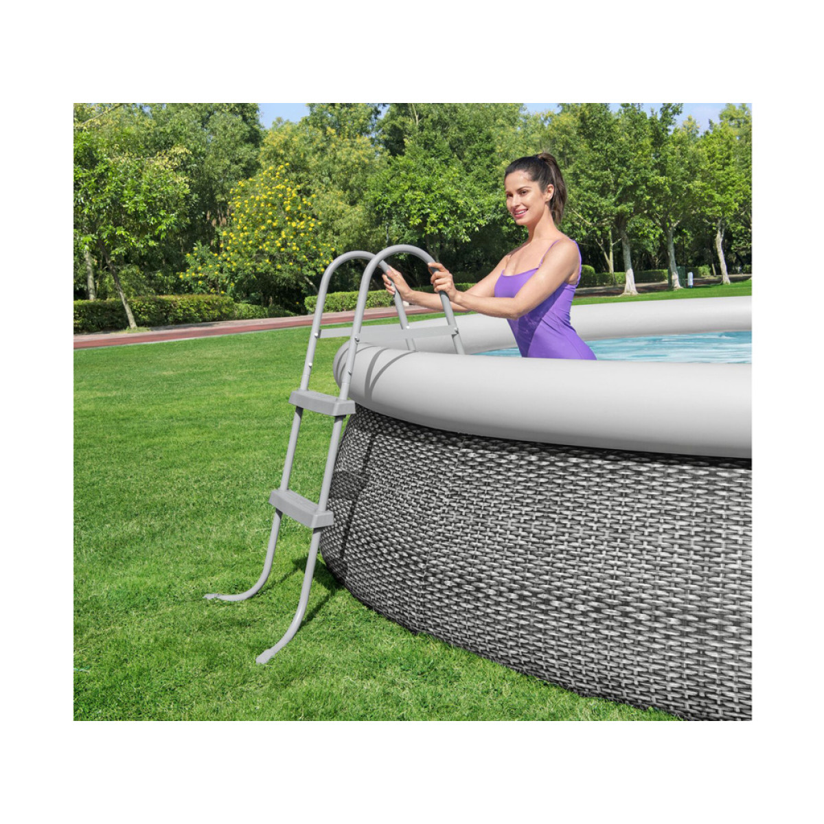Bestway metalinė kopėčios baseinui yra būtinas aksesuaras didesniems sodo baseinams. Šios kopėčios turi dvipusius neslystančius laiptus, kurie leidžia patogiai įlipti ir išlipti iš baseino. Jas lengva surinkti ir jos puikiai tinka tiek pripučiamiems, tiek stacionariems baseinams, kurių aukštis neviršija 84 cm.