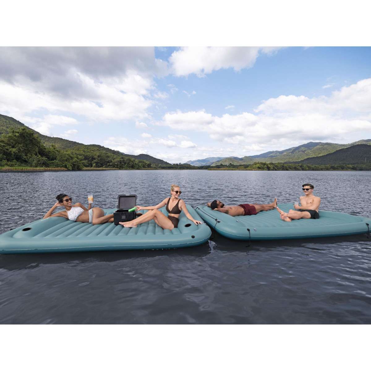 Didelė pripučiama plaukiojanti platforma Hydro-Force™ Sun Soaker™ sukurta tiems, kurie mėgsta atostogauti su draugais. Platformos dydis leidžia patogiai įsitaisyti keturiems suaugusiems. Clasp 'N Go™ jungtys leidžia sujungti kelias plaukiojančias salas, suteikiant dar daugiau pramogų draugų rate!